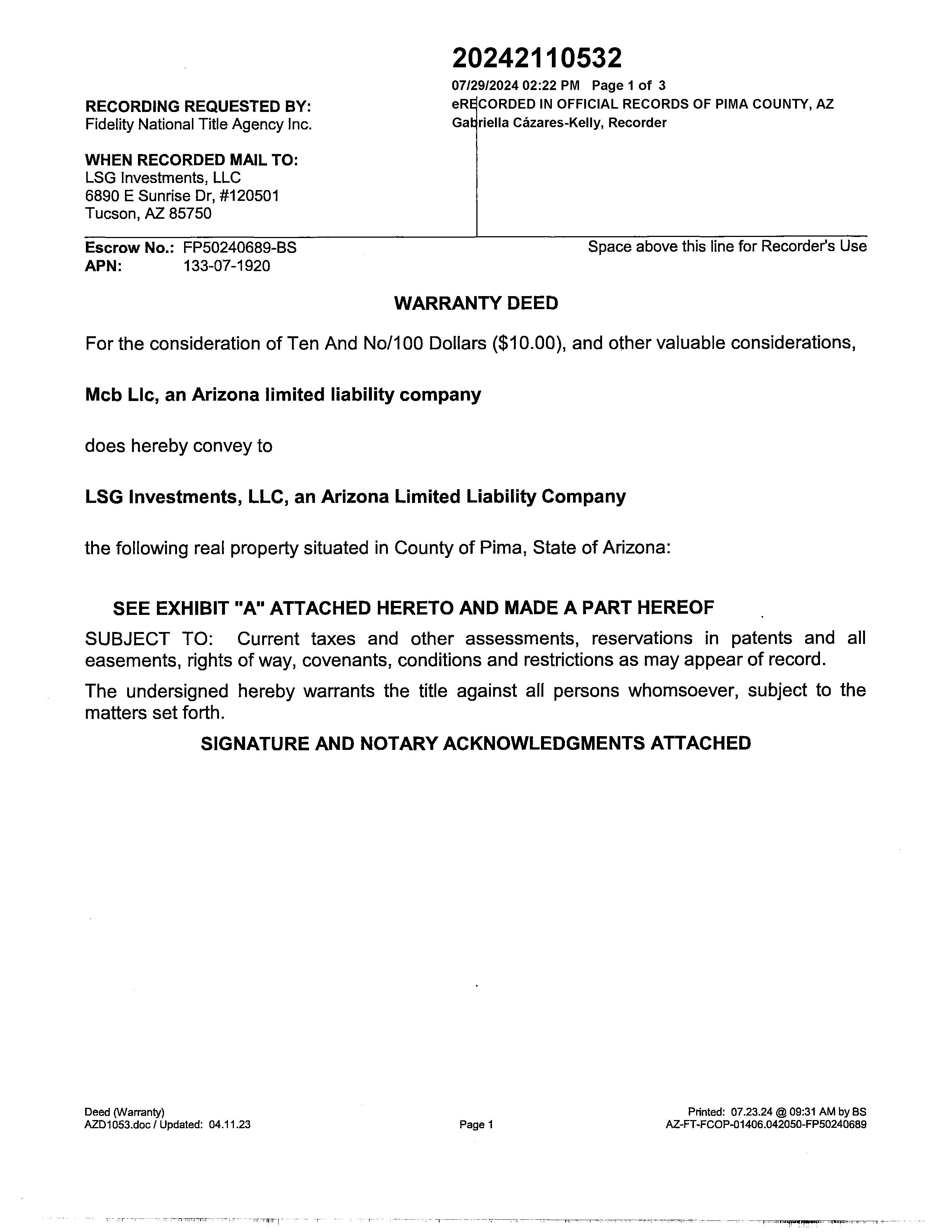6390 E. Tanque Verde Road Tucson, AZ 85715
