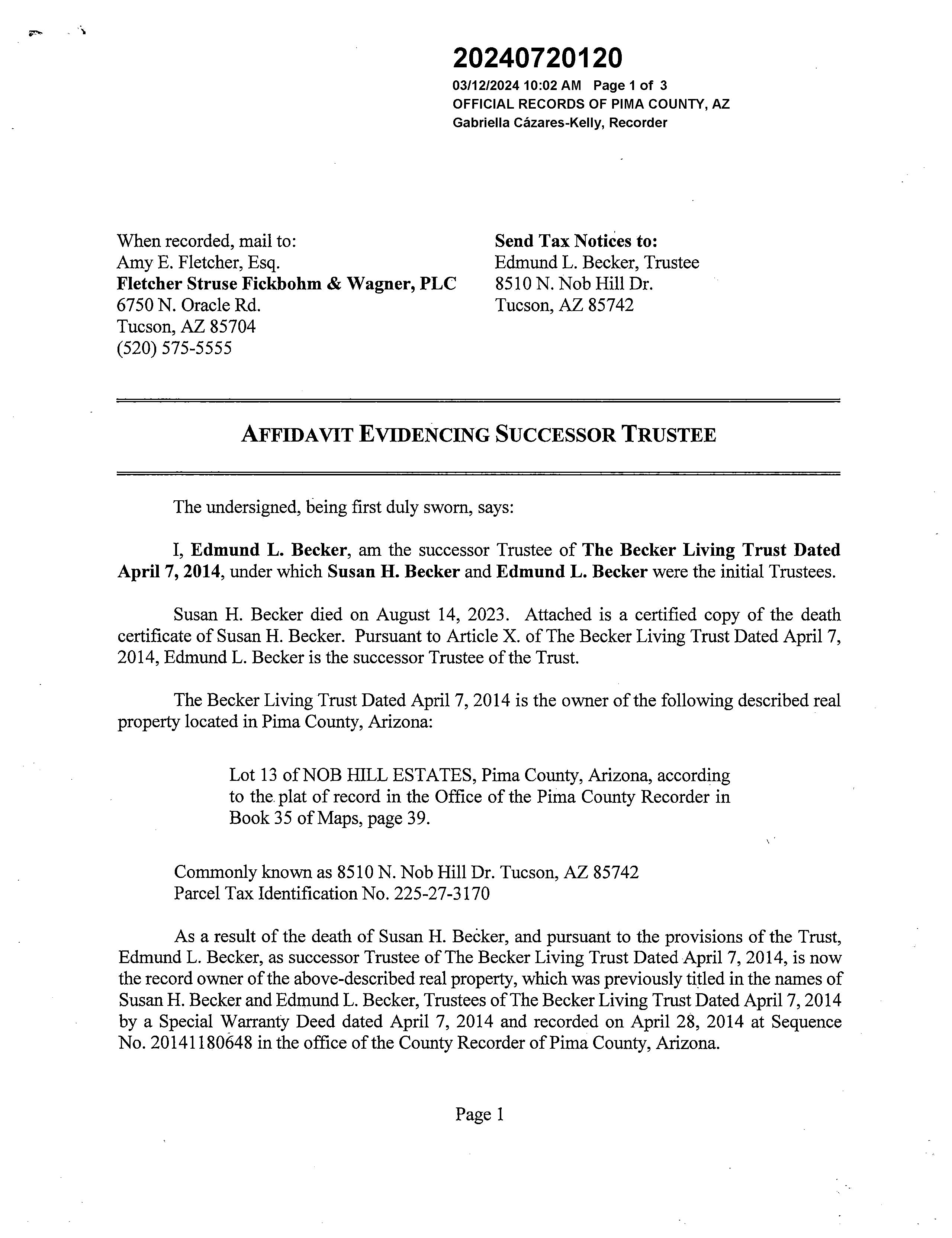 Mailing Address : 8510 N Nob Hill Dr, Tucson AZ 85742-9765 R004