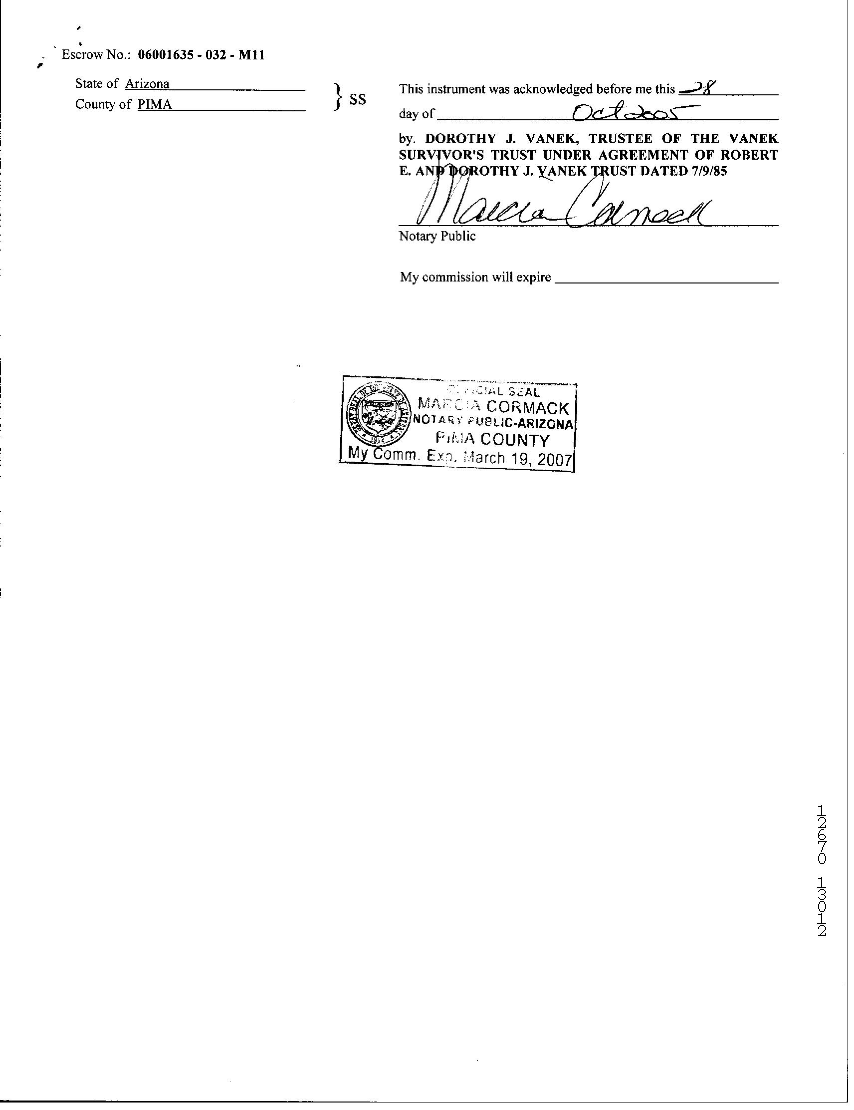 Seller Name : Vanek R E & D J Trust