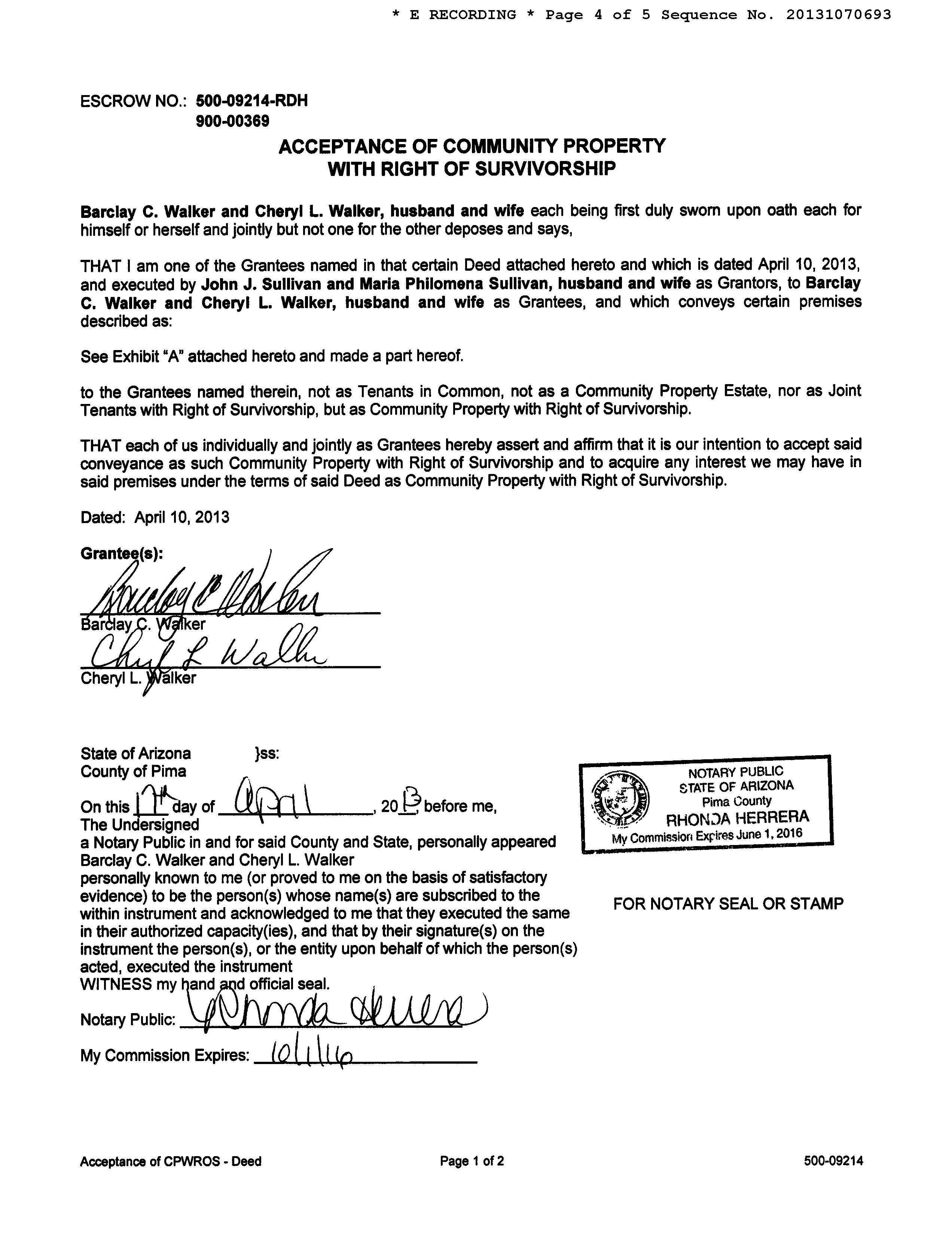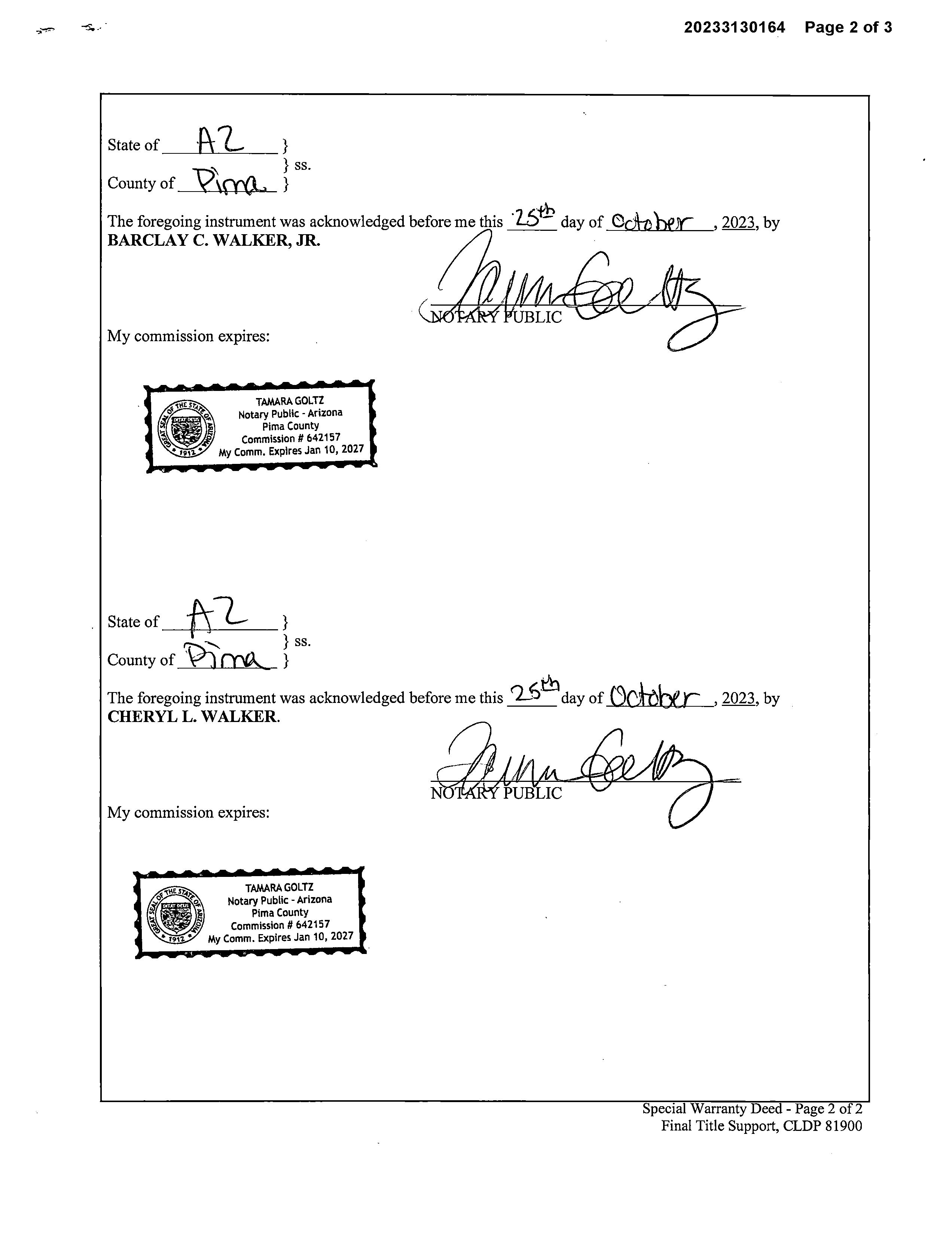 OWNER: WALKER FAMILY LIVING TRUST AFFIDAVIT 2023 3130164 11/09/2023