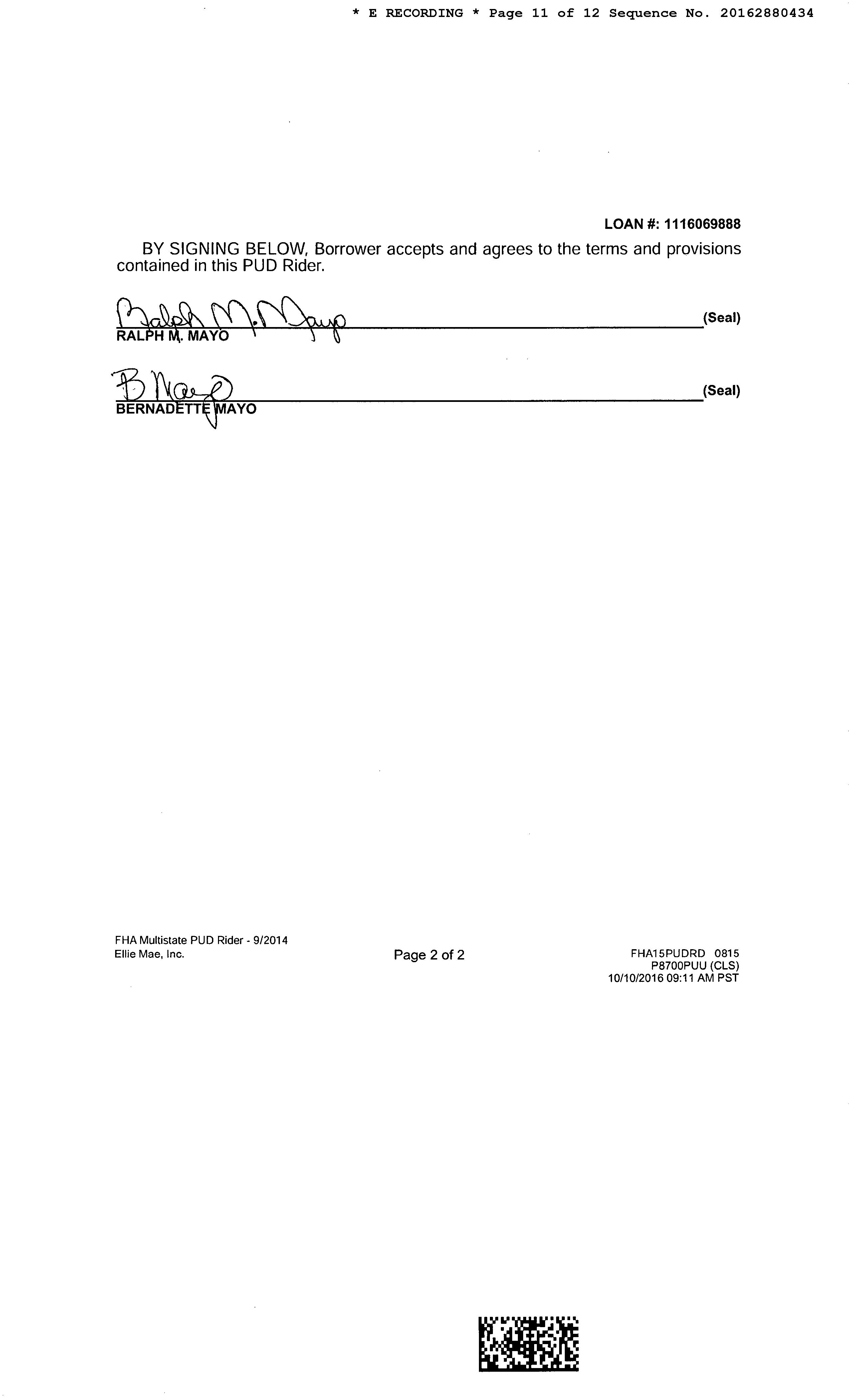OWNER: MAYO RALPH M/BERNADETTE AFFIDAVIT 2016 2880433 10/14/2016