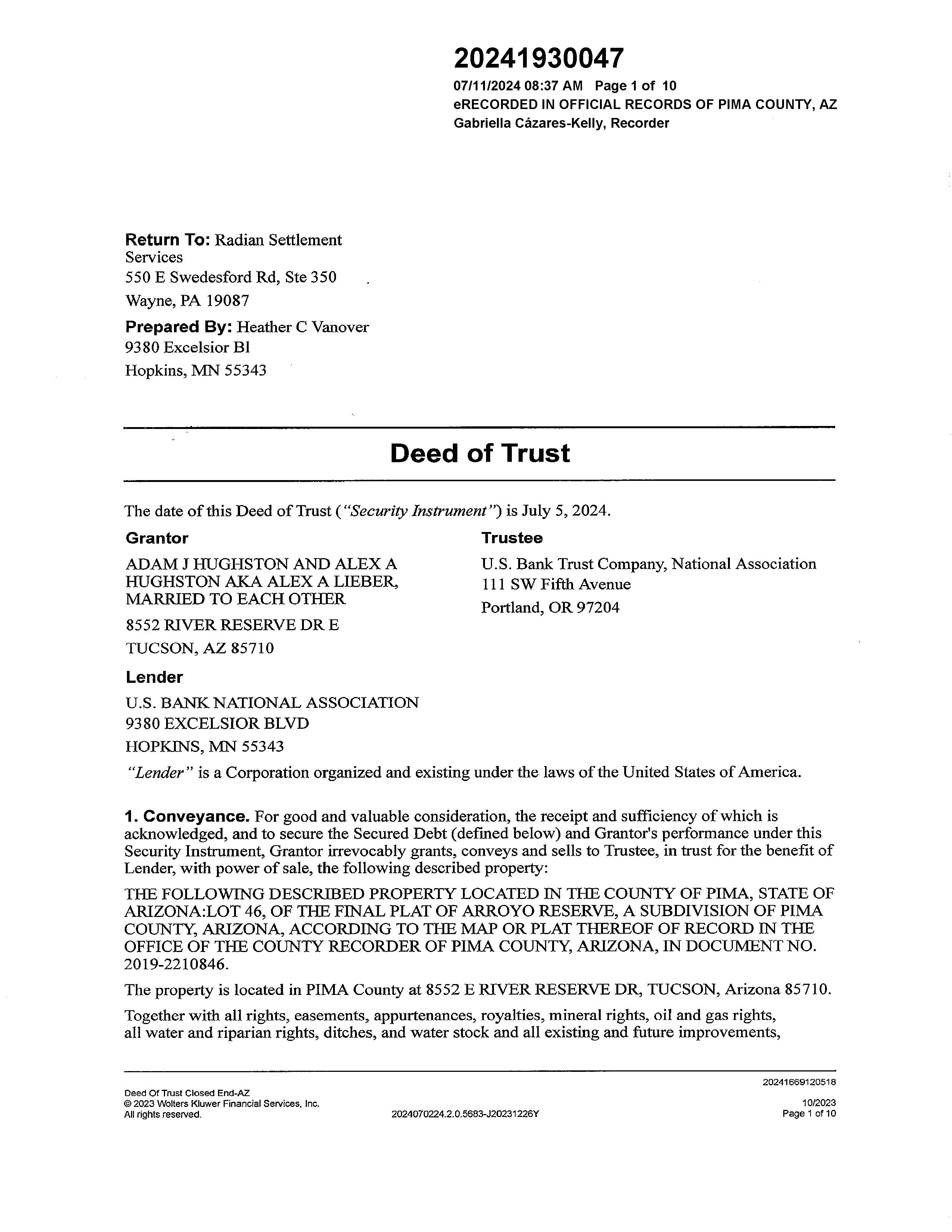 SITUS: 8552 E RIVER RESERVE DR TUC