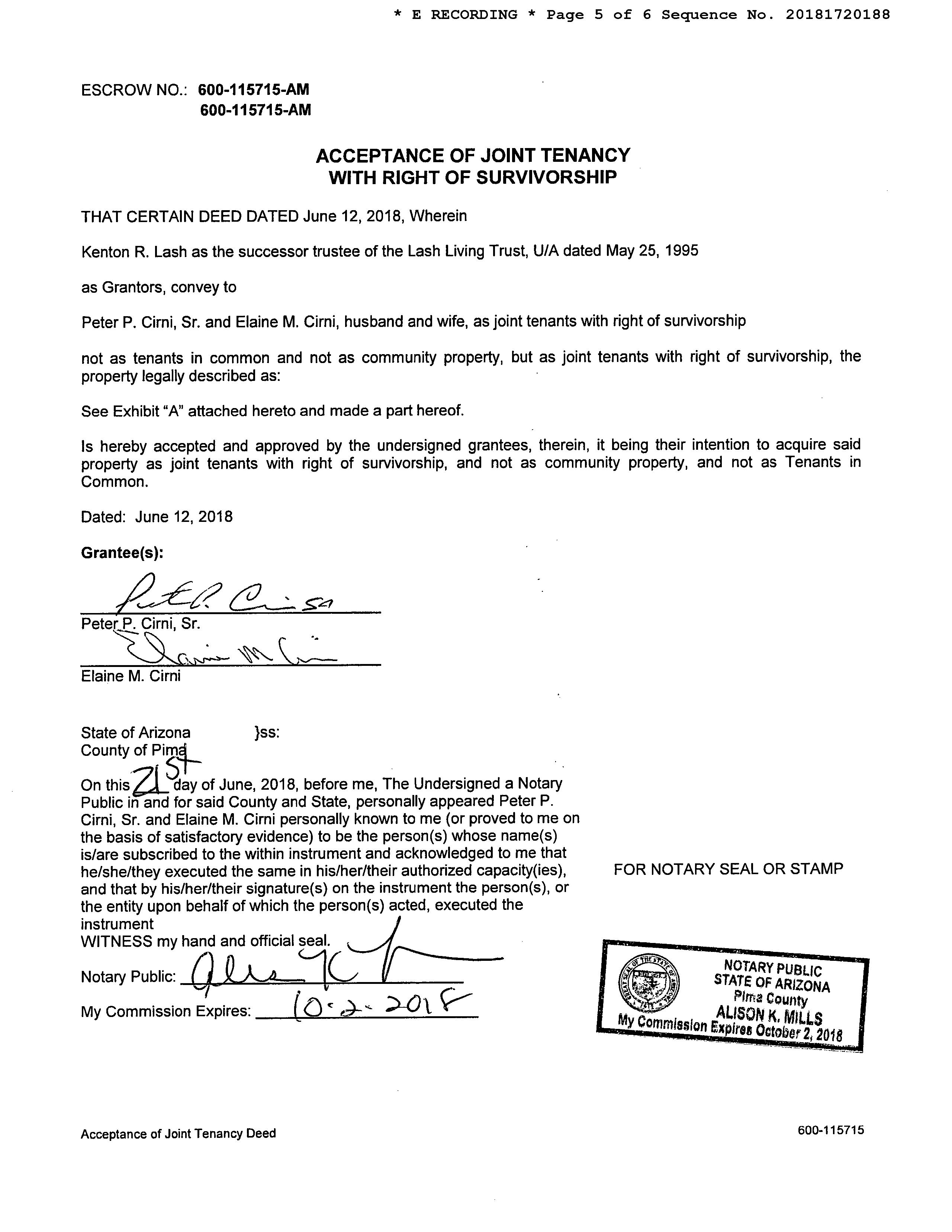 Mailing Address : 8598 S Passage Dr, Tucson AZ 85756-9026 R129