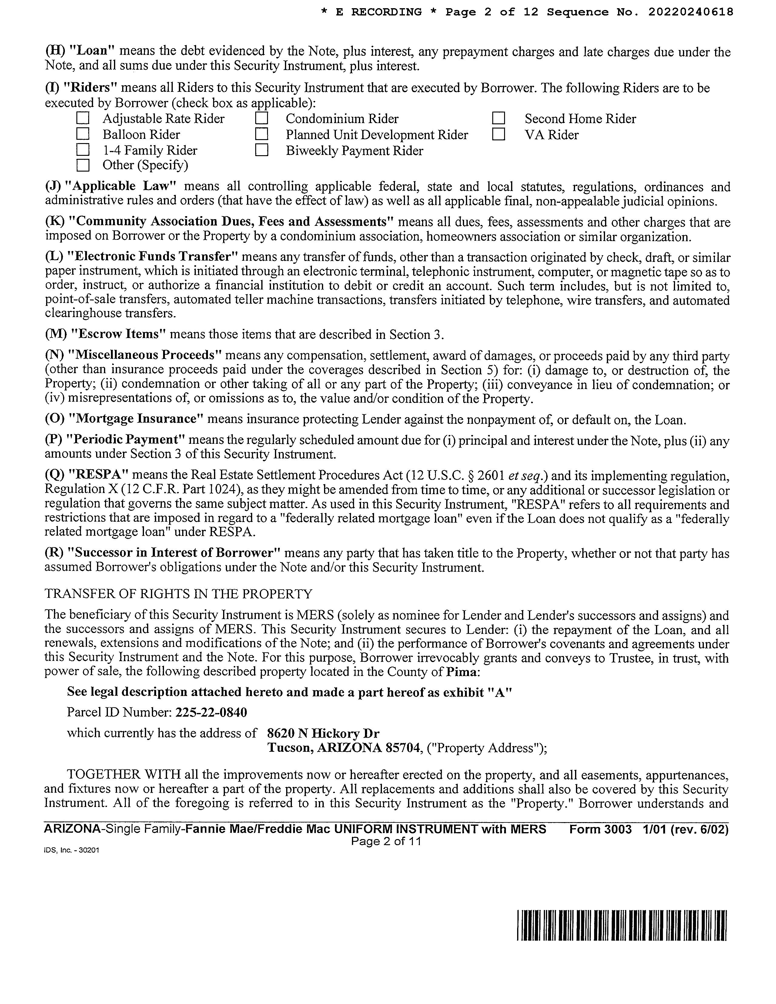 Subject Property : 8620 N Hickory Dr Tucson AZ 85704