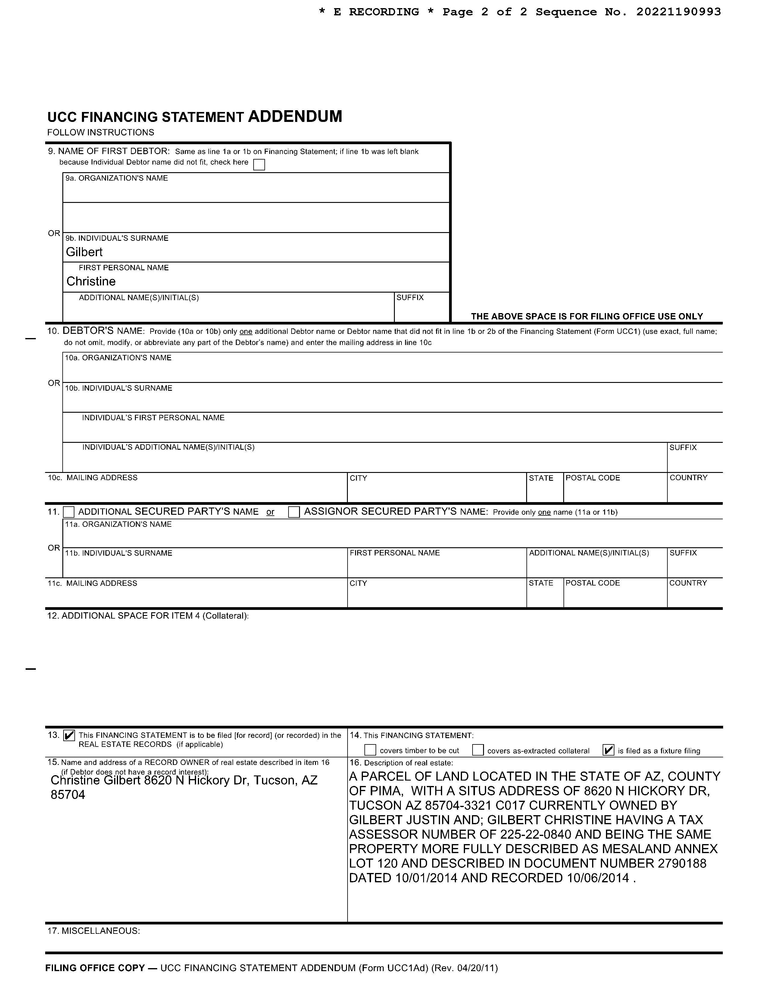 Mailing Address : 8620 N Hickory Dr, Tucson AZ 85704-3321 C017