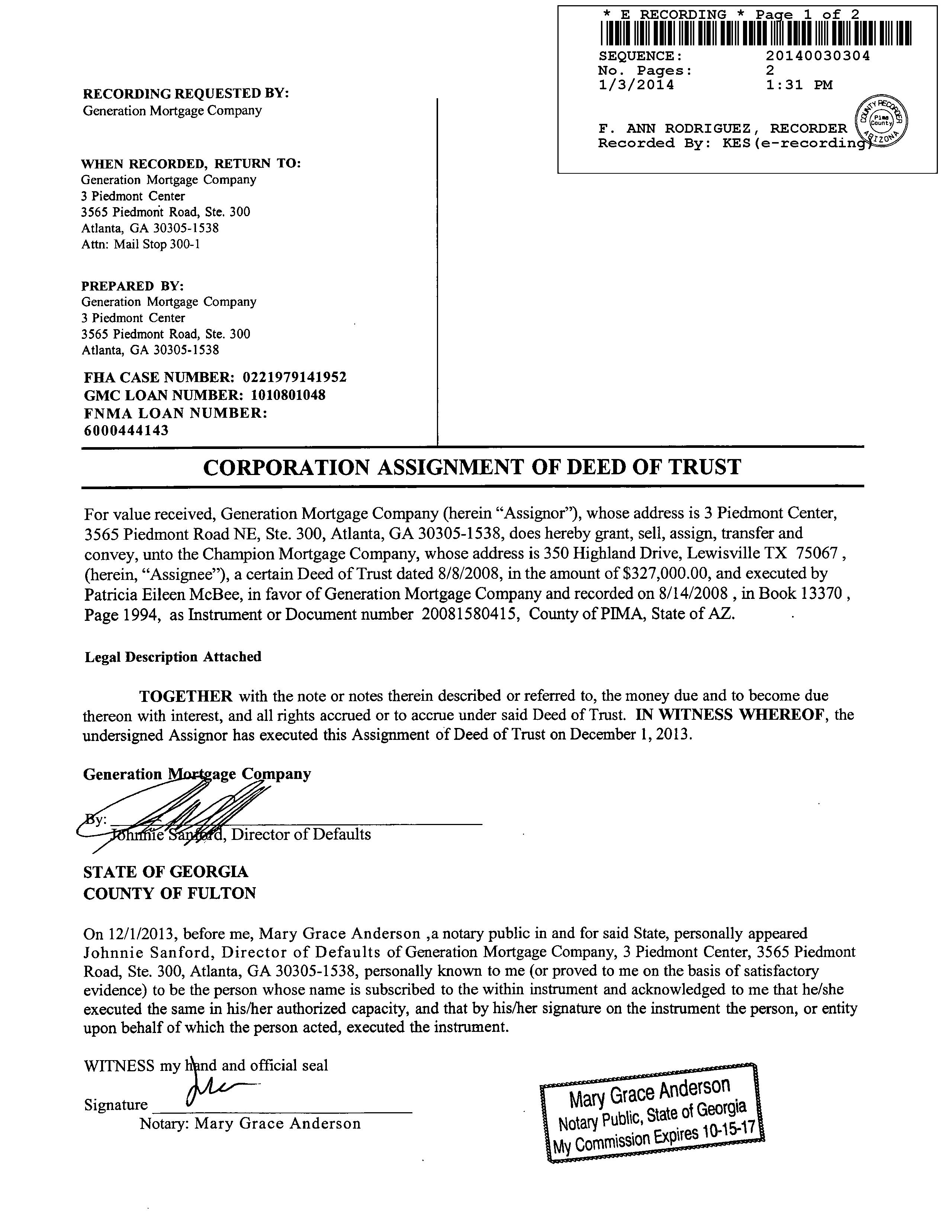 Sale Information Prior Rec/Sale Date : 01/13/1999 / 01/00/1999 Prior Lender : Americas Wholesale Lender Prior Sale Price : $109,300 Prior 1st Mtg Amt/Type : $98,370 / Conv Prior Doc Number : 10962-1658 Prior 1st Mtg Rate/Type : / Fixed Rate Loan Prior Deed Type : Warranty Deed