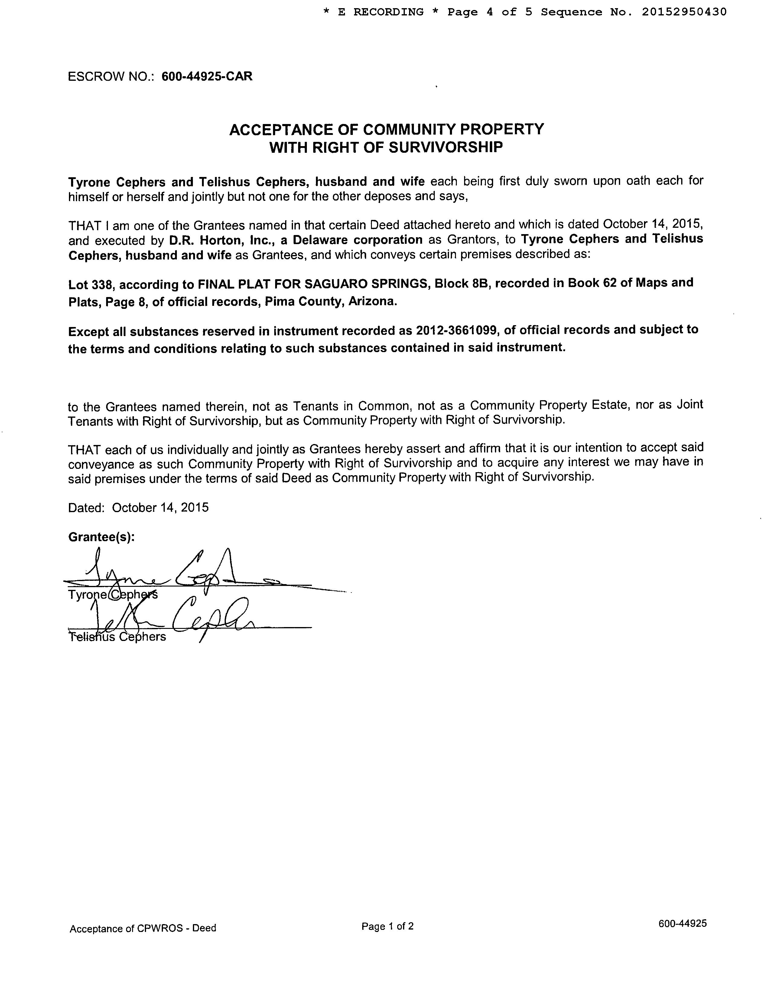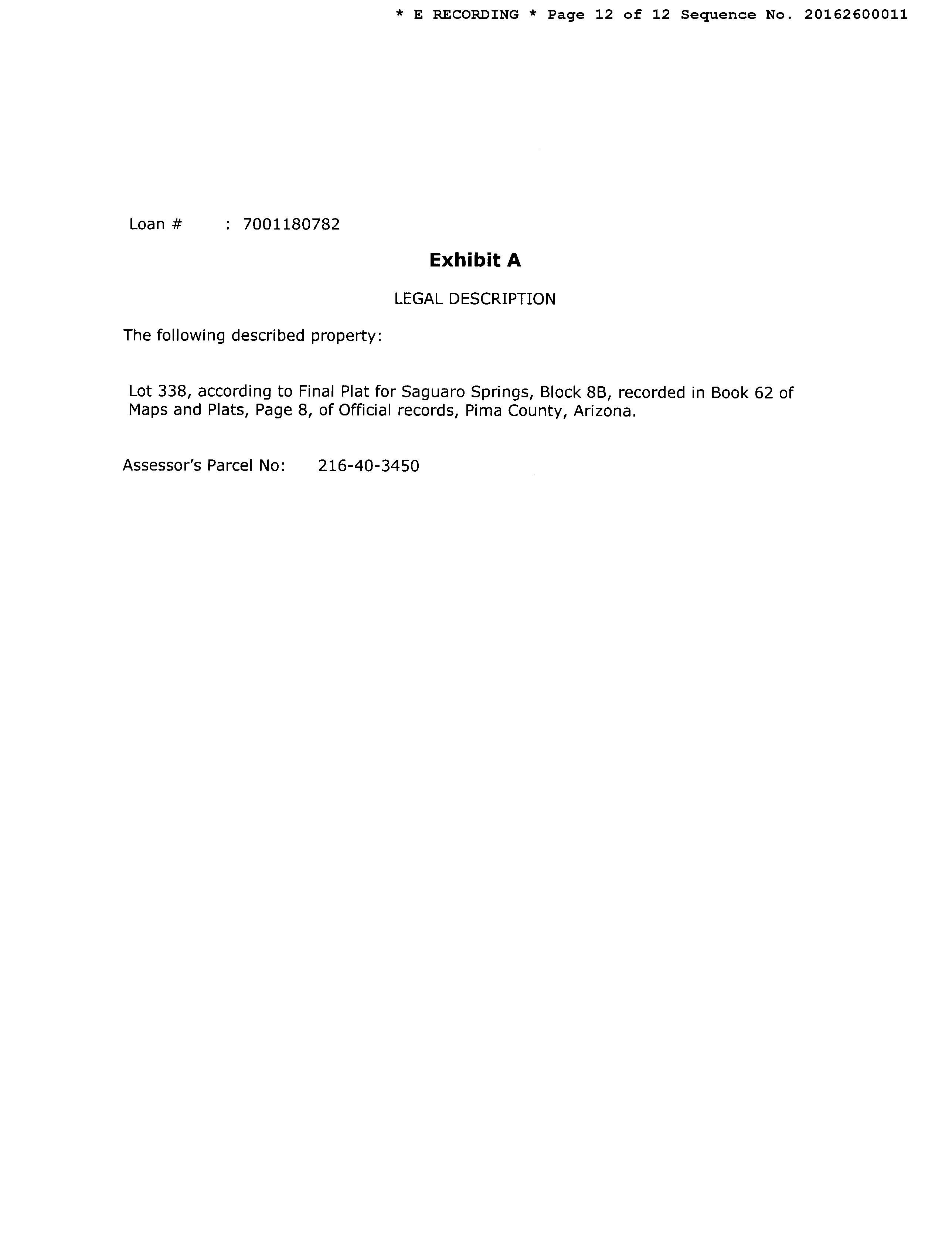 LEGAL: SAGUARO SPRINGS BLOCK 8B LOT 338 EXC MINERAL RIGHTS BELOW 30-FT