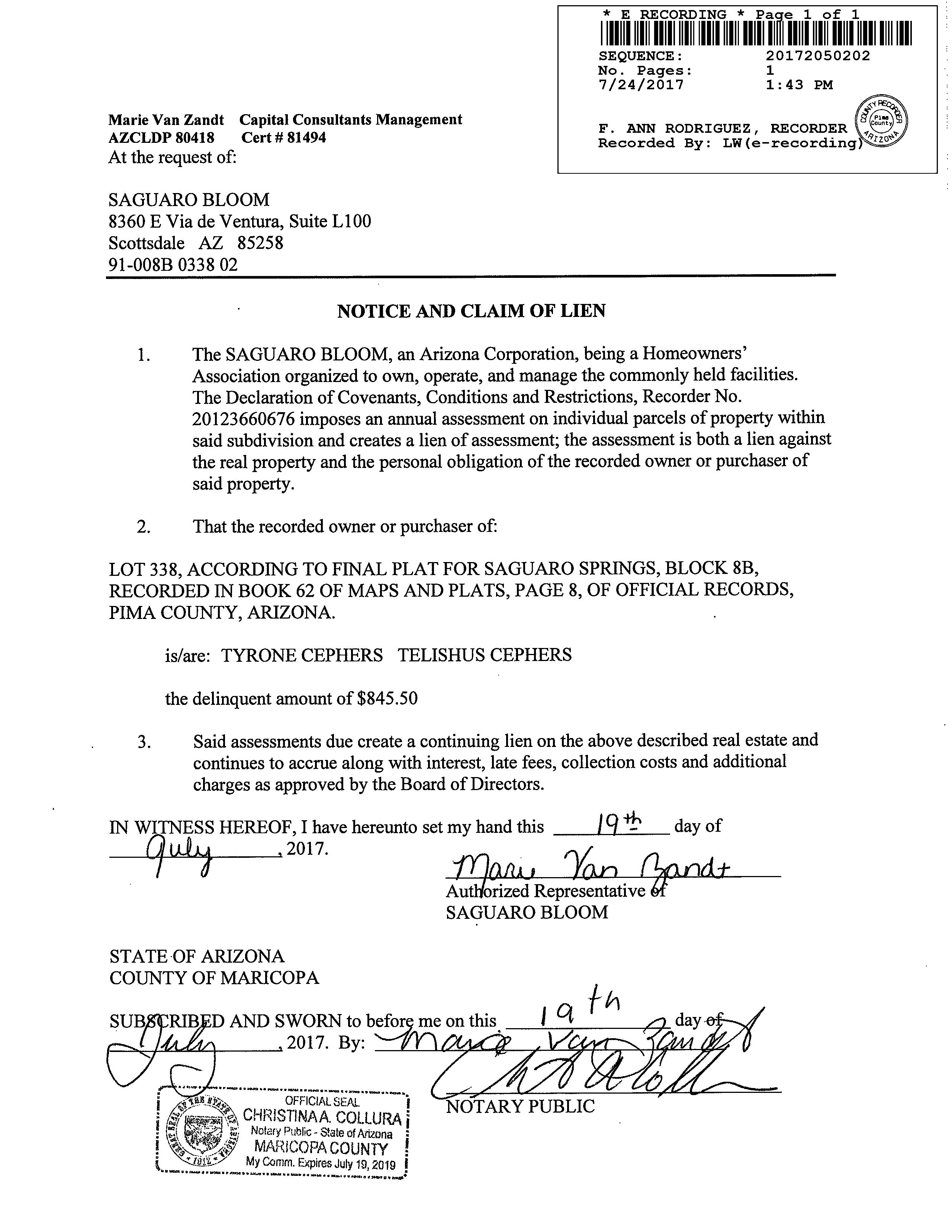 Legal Description : Saguaro Springs Block 8b Lot 338 Exc Mineral Rights Below 30-ft