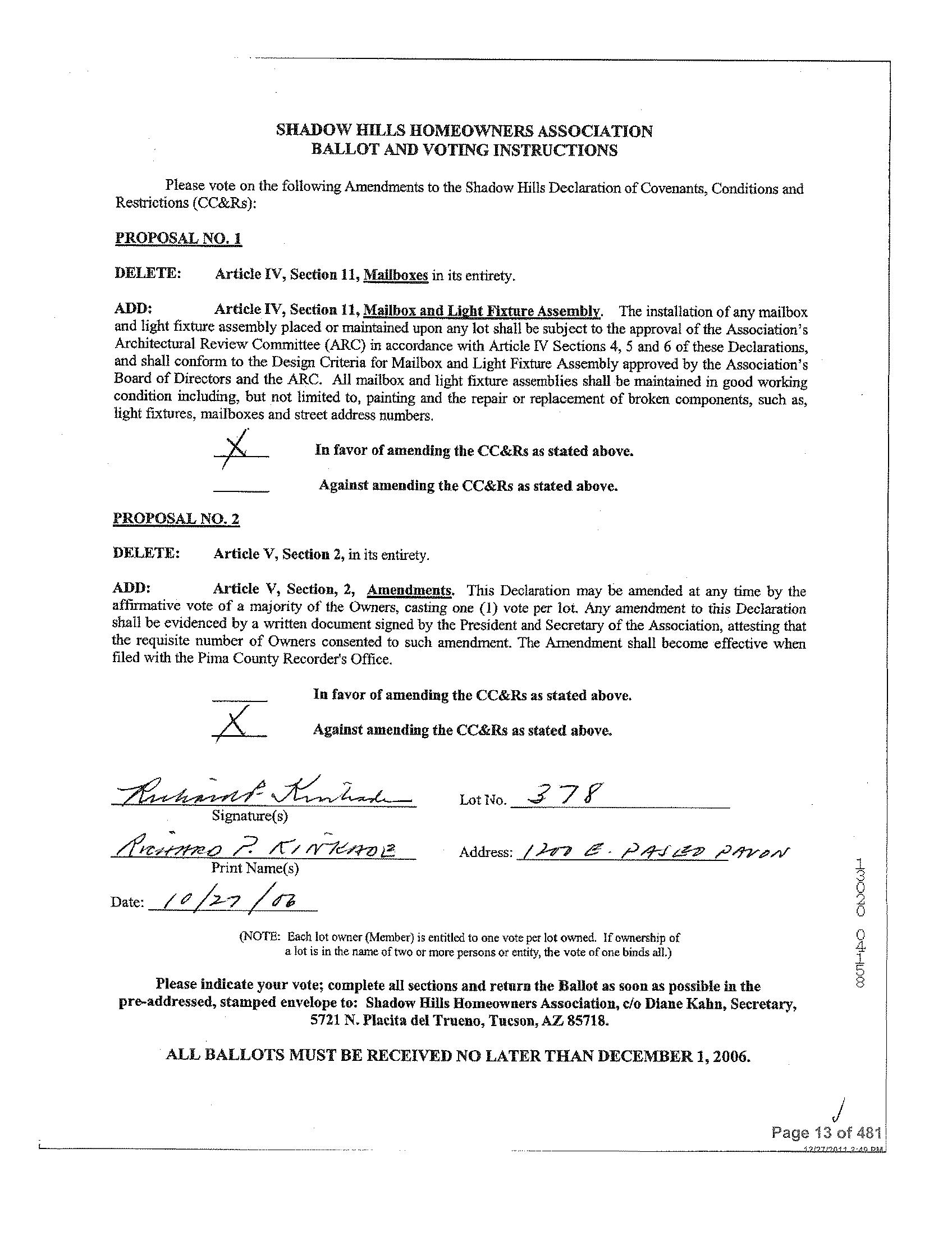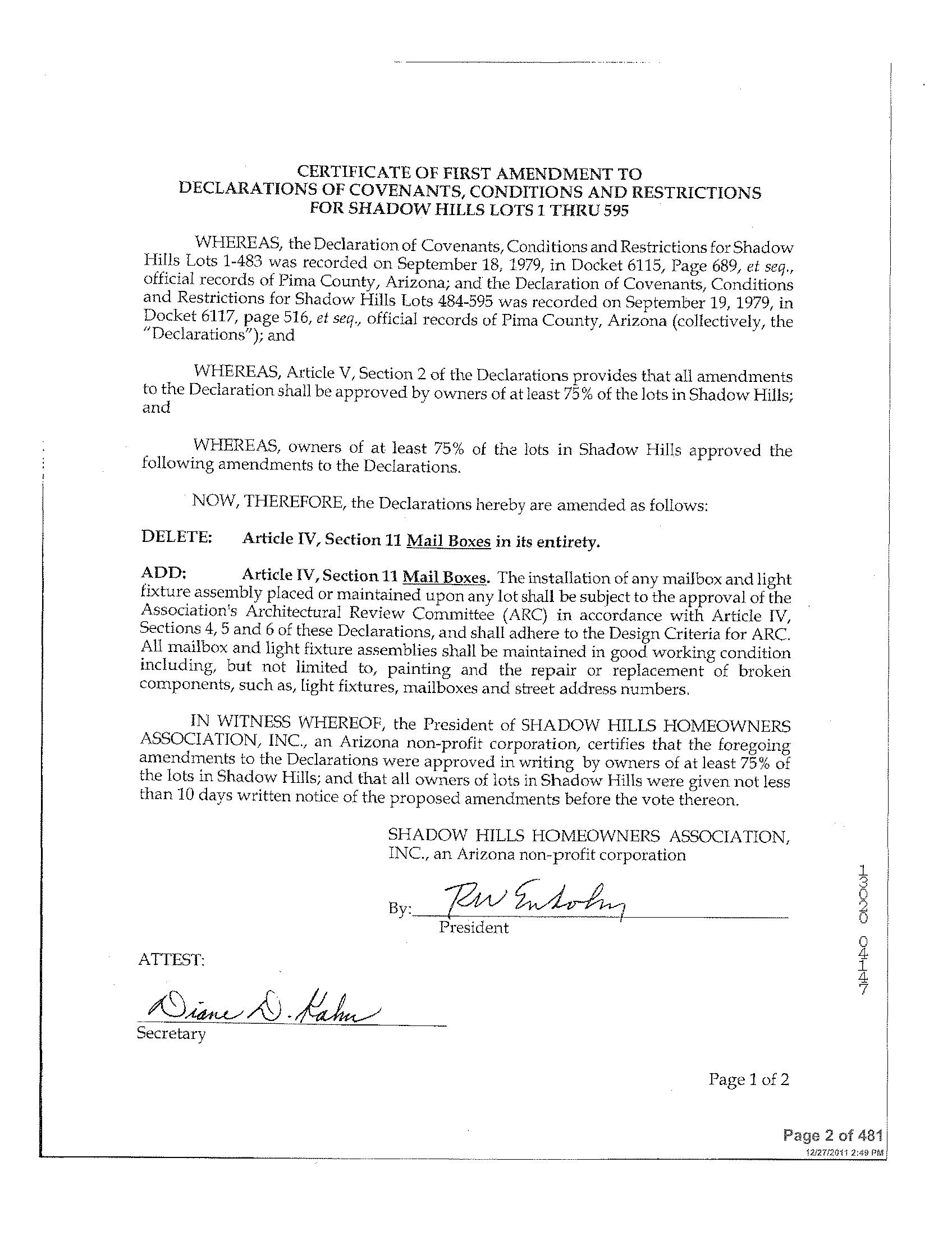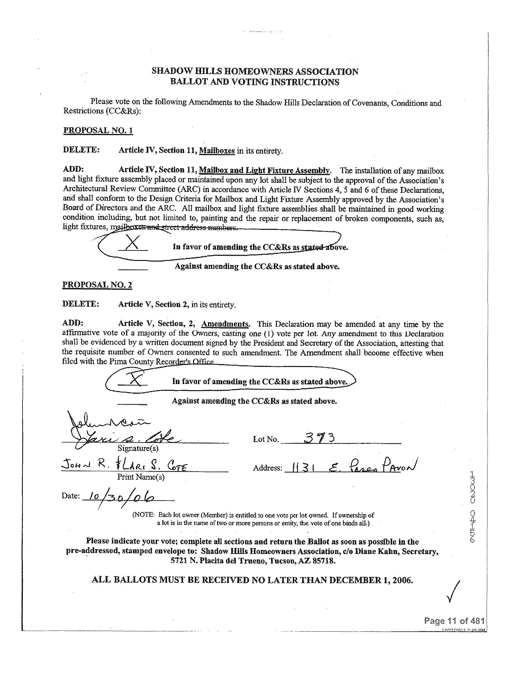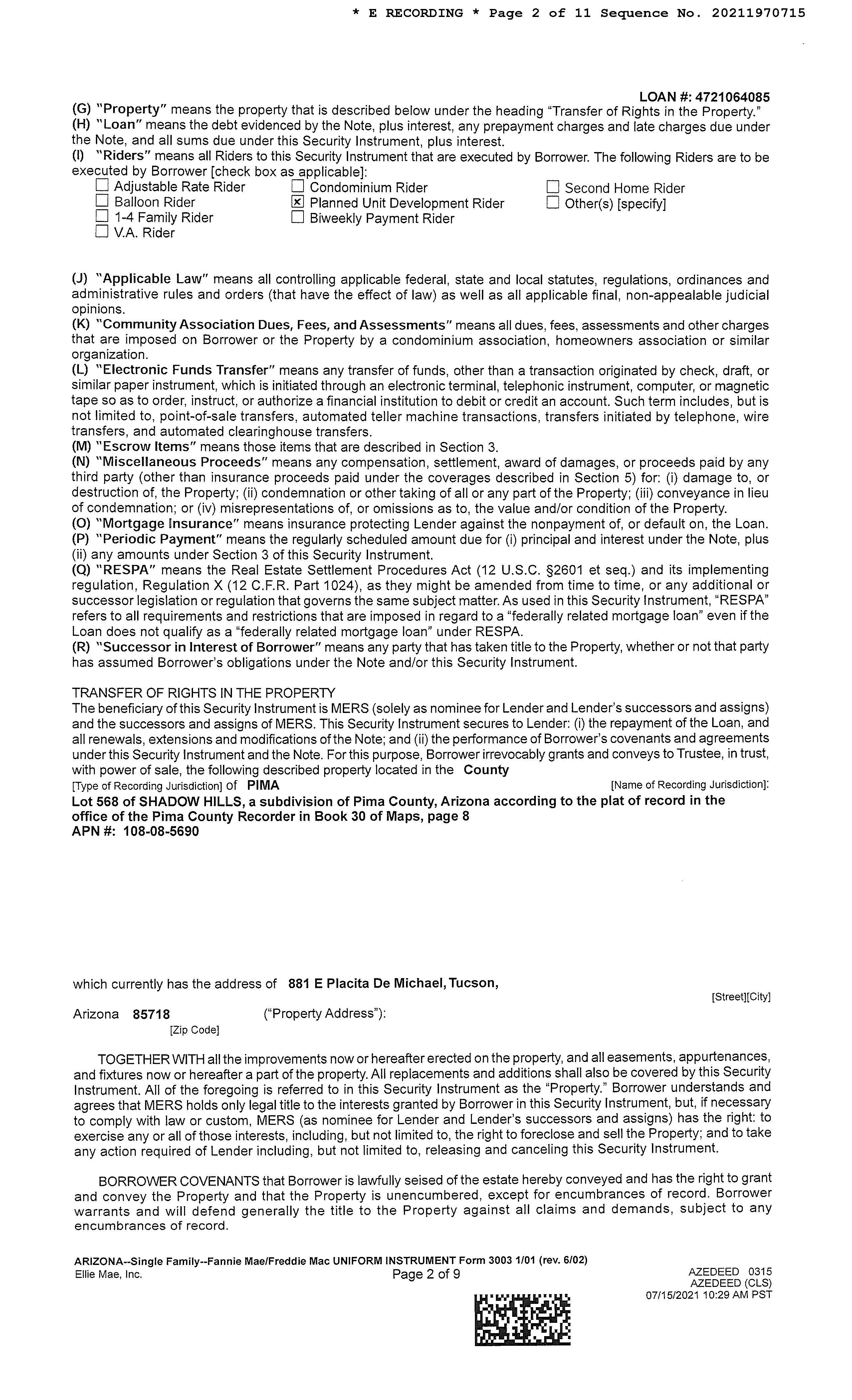 Mailing Address : 881 E Placita De Michael, Tucson AZ 85718-2723 C055