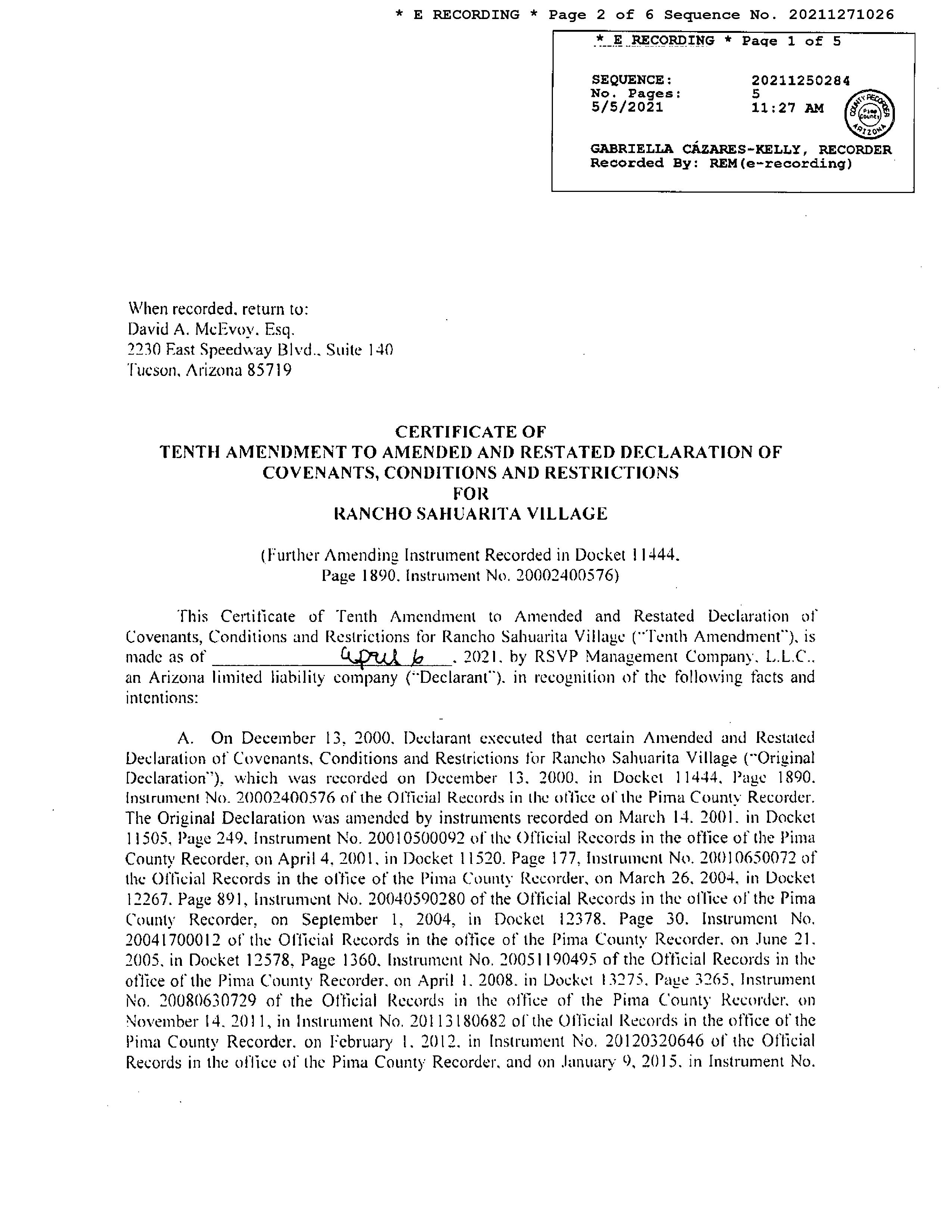 Covenants, Conditions & Restrictions