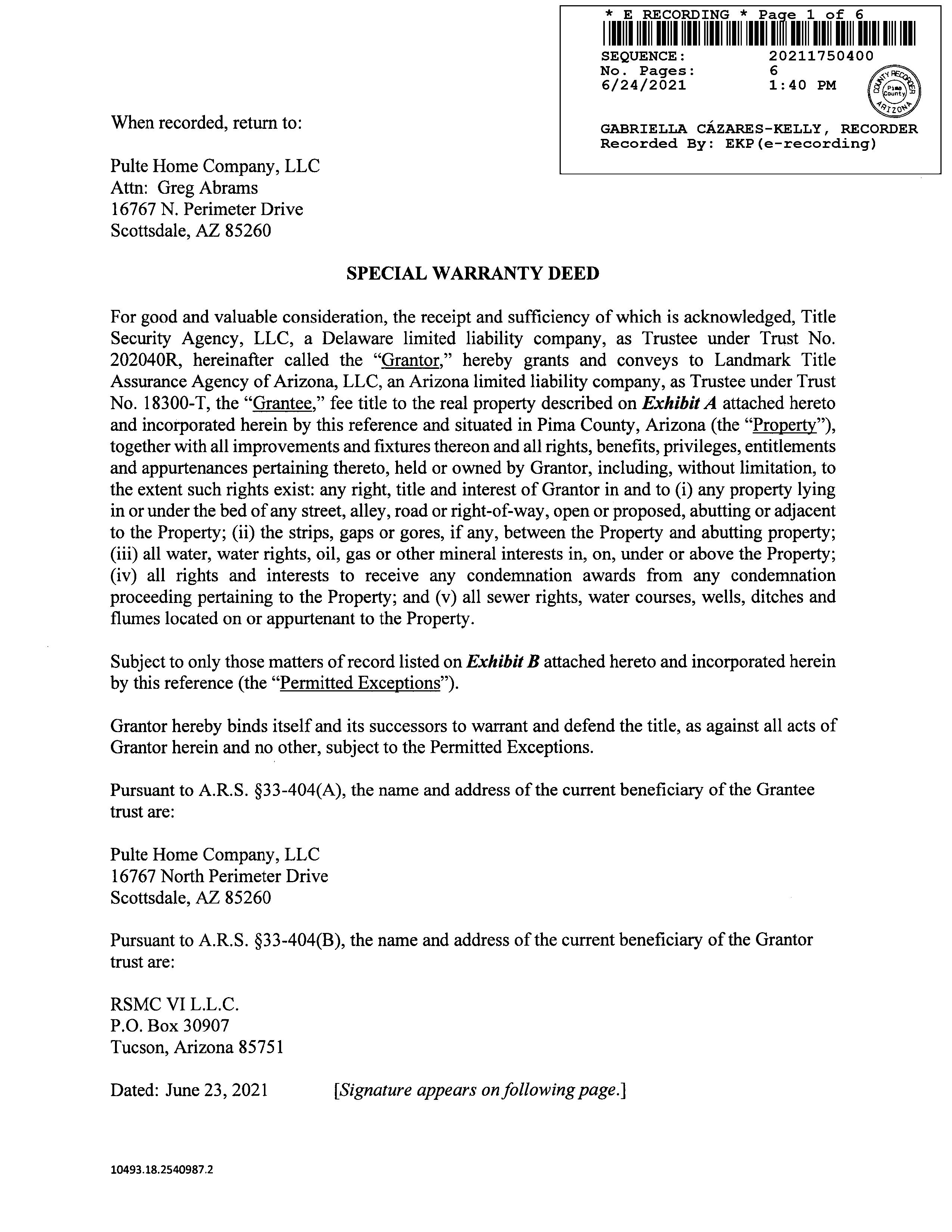 Owner Name : Landmark Title Agency Az Llc Tr 18300-t