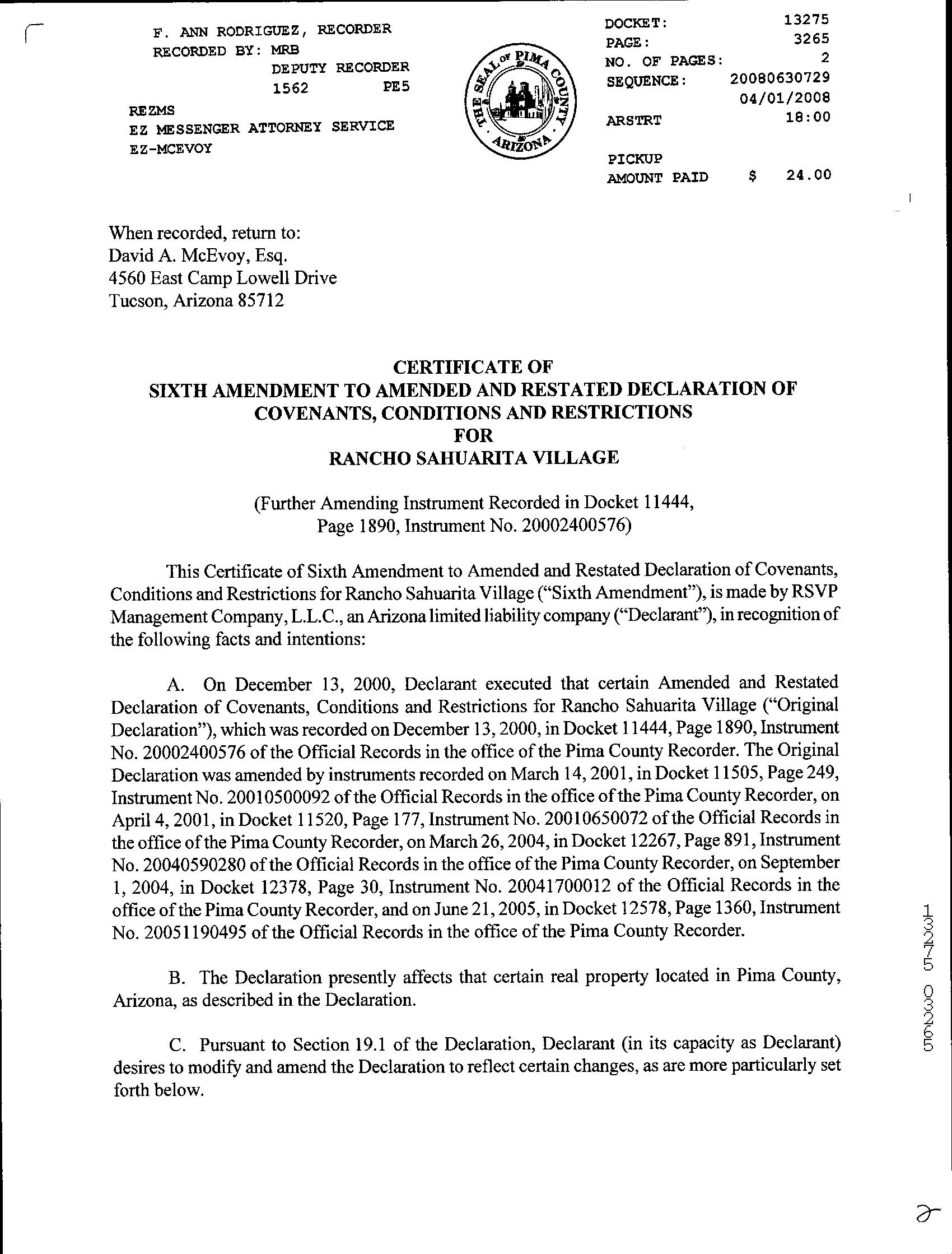 SITUS: 894 W CALLE EL TECLADO SAH
