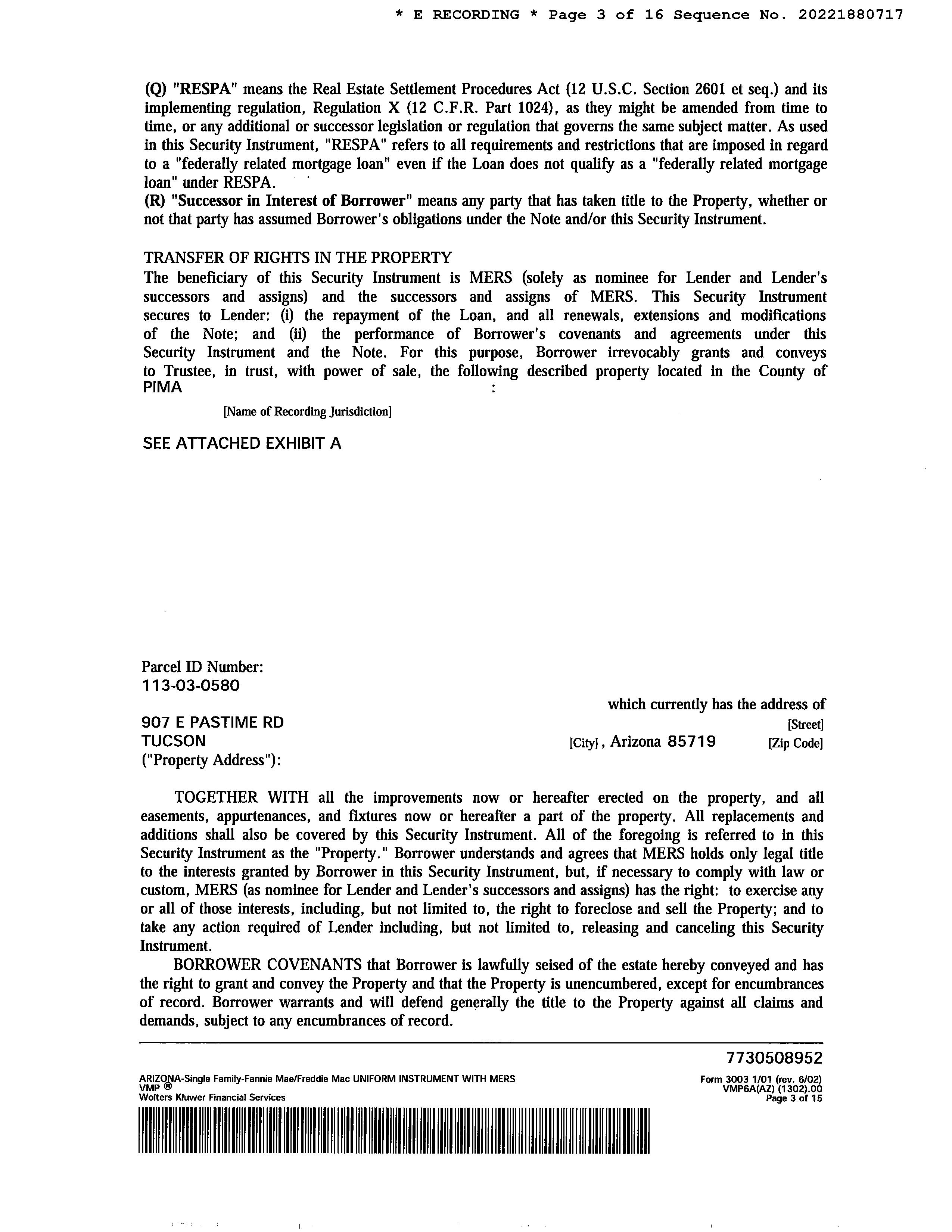 SITUS: 907 E PASTIME RD TUC