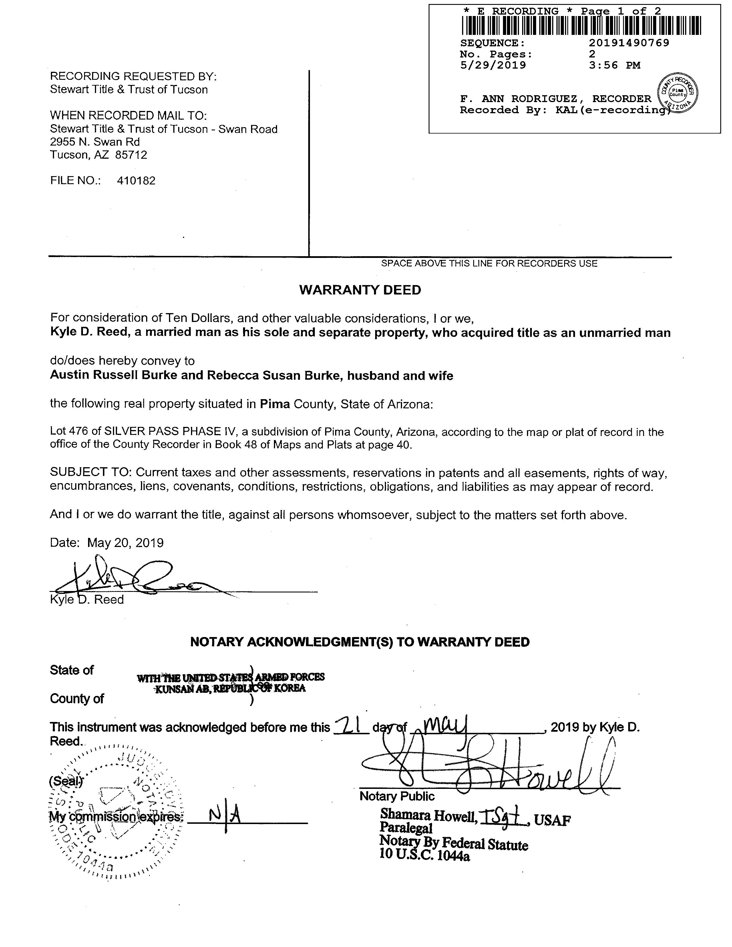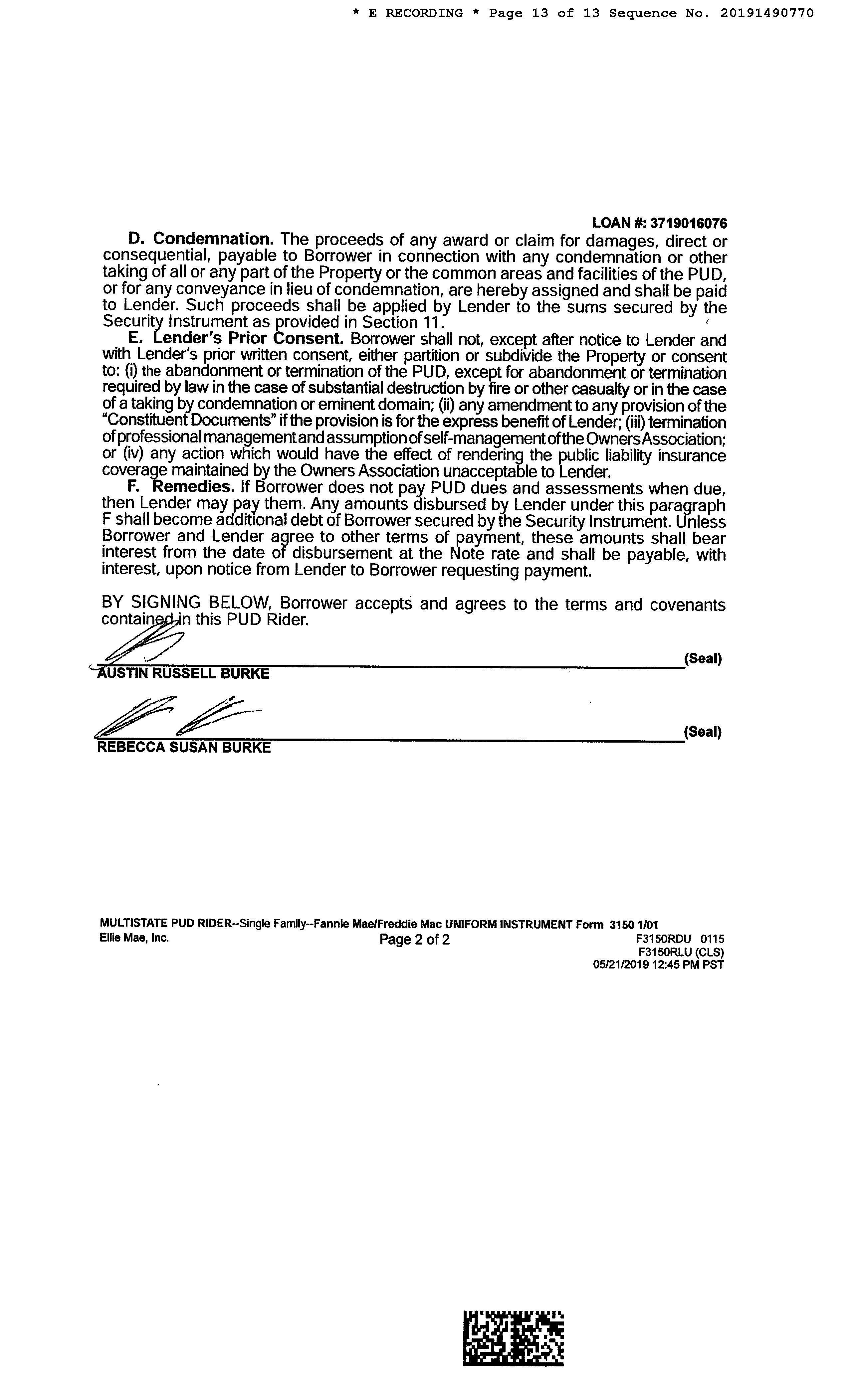 OWNER: BURKE AUSTIN RUSSELL & REBE AFFIDAVIT 2019 1490769 05/29/2019