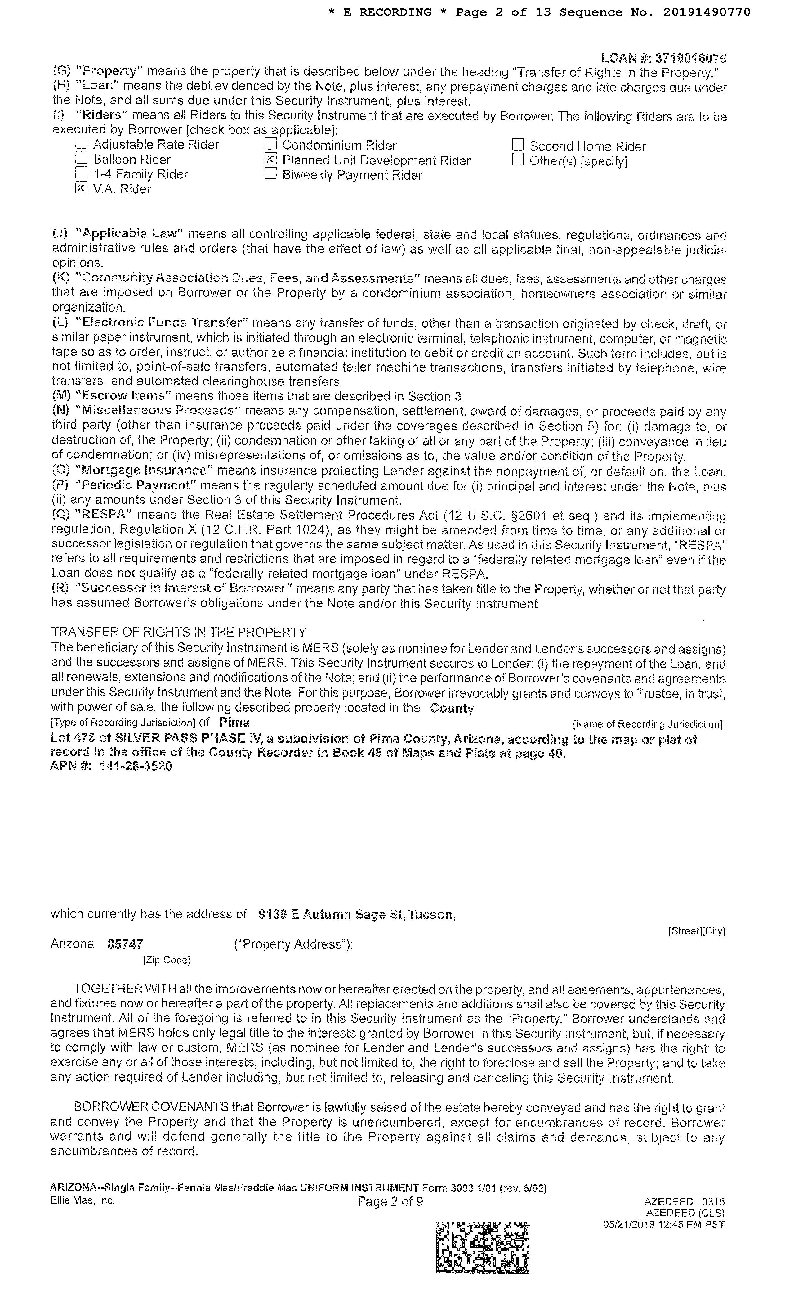 SITUS: 9139 E AUTUMN SAGE ST TUC