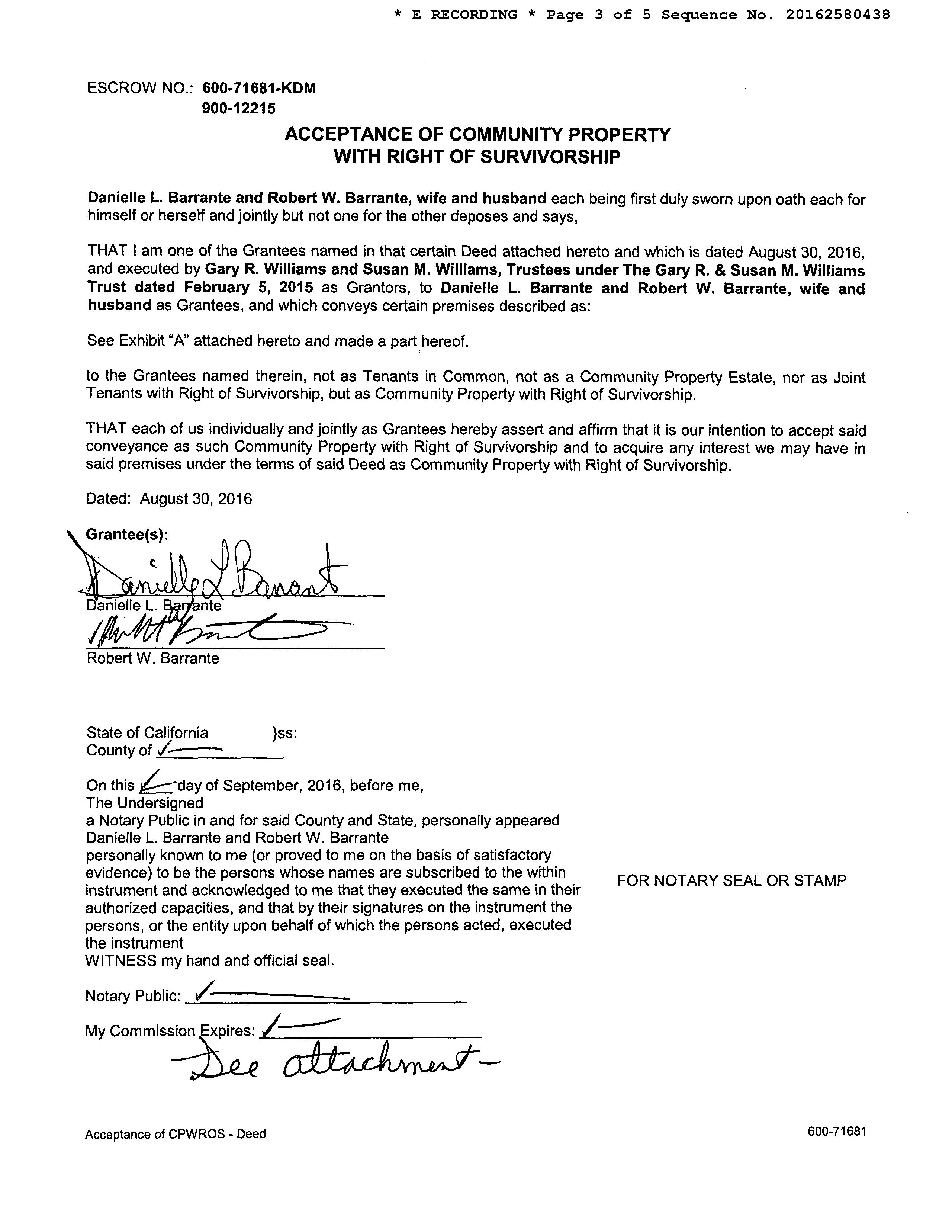 OWNER: BARRANTE DANIELLE/ROBERT W AFFIDAVIT 2016 2580438 09/14/2016