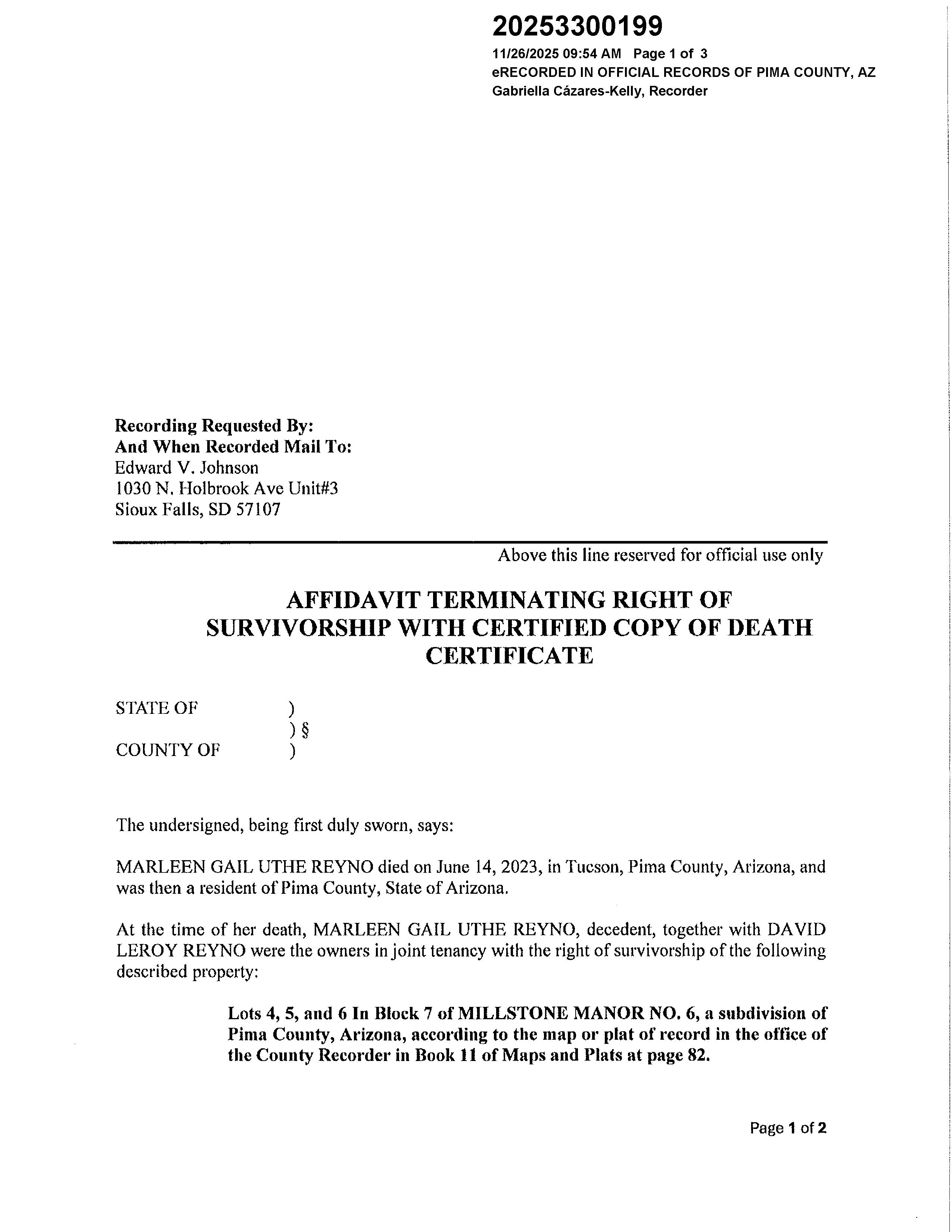 Situs Address: 9251 W DUDLEY ST Owners Name: Address: REYNO DAVID LE ROY & MARLEEN GAIL UTHE JT/RS PO
