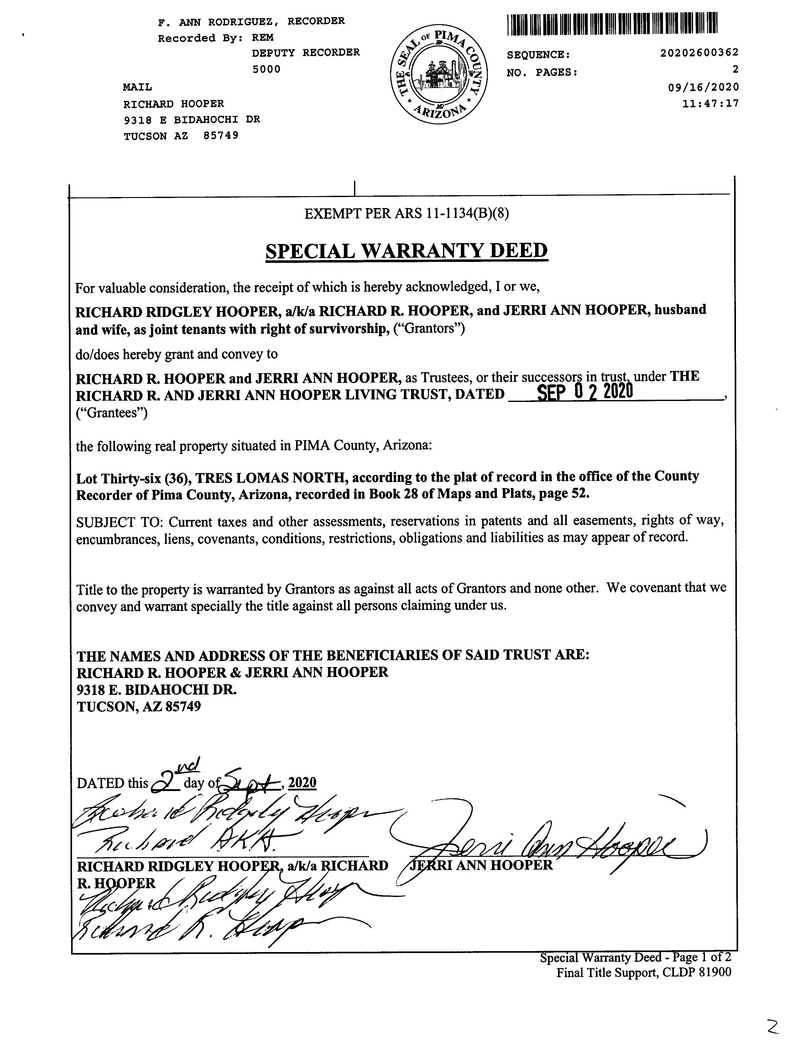 Owner Name : Hooper Richard R / Hooper Jerri Ann