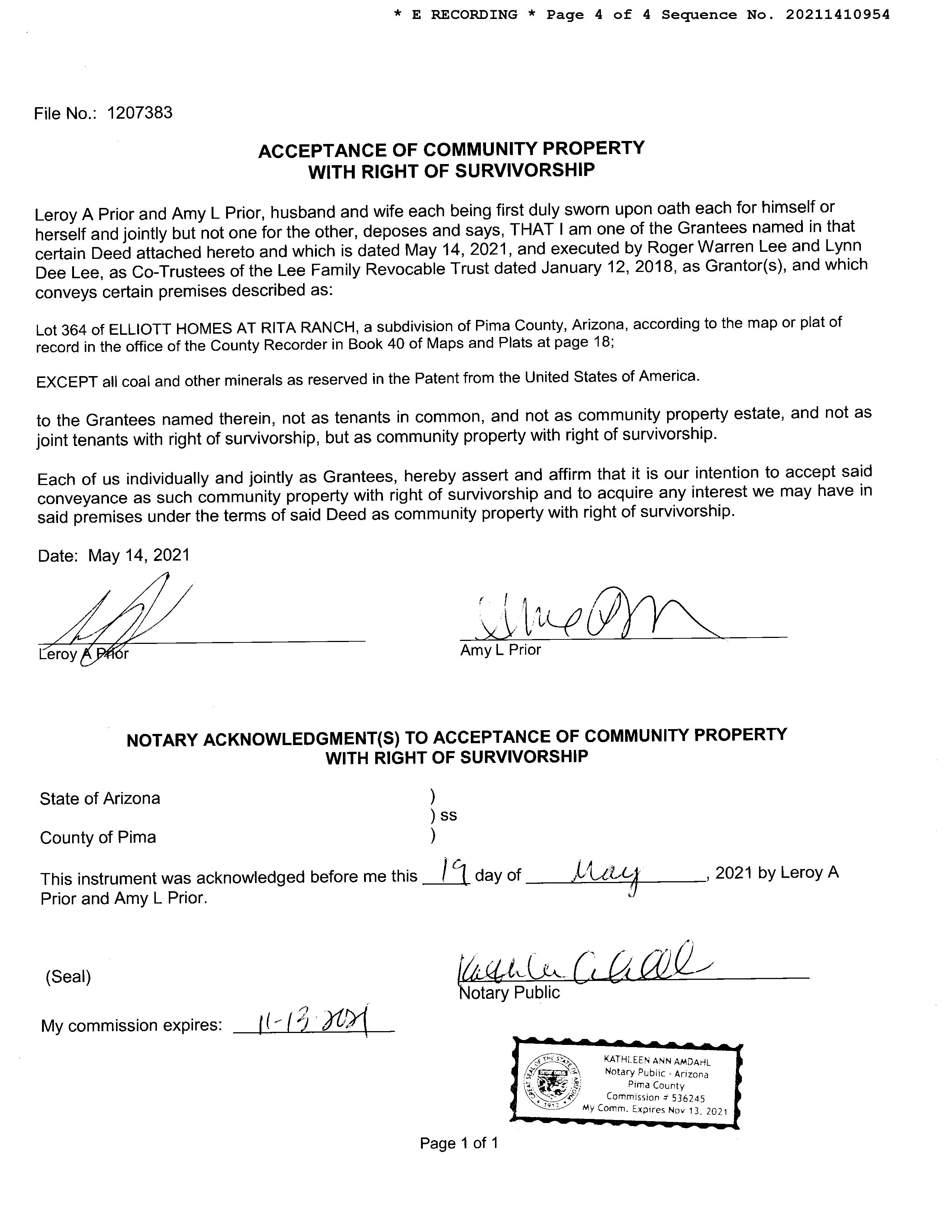 OWNER: PRIOR LEROY & AMY  AFFIDAVIT    2021 1410954 05/21/2021
