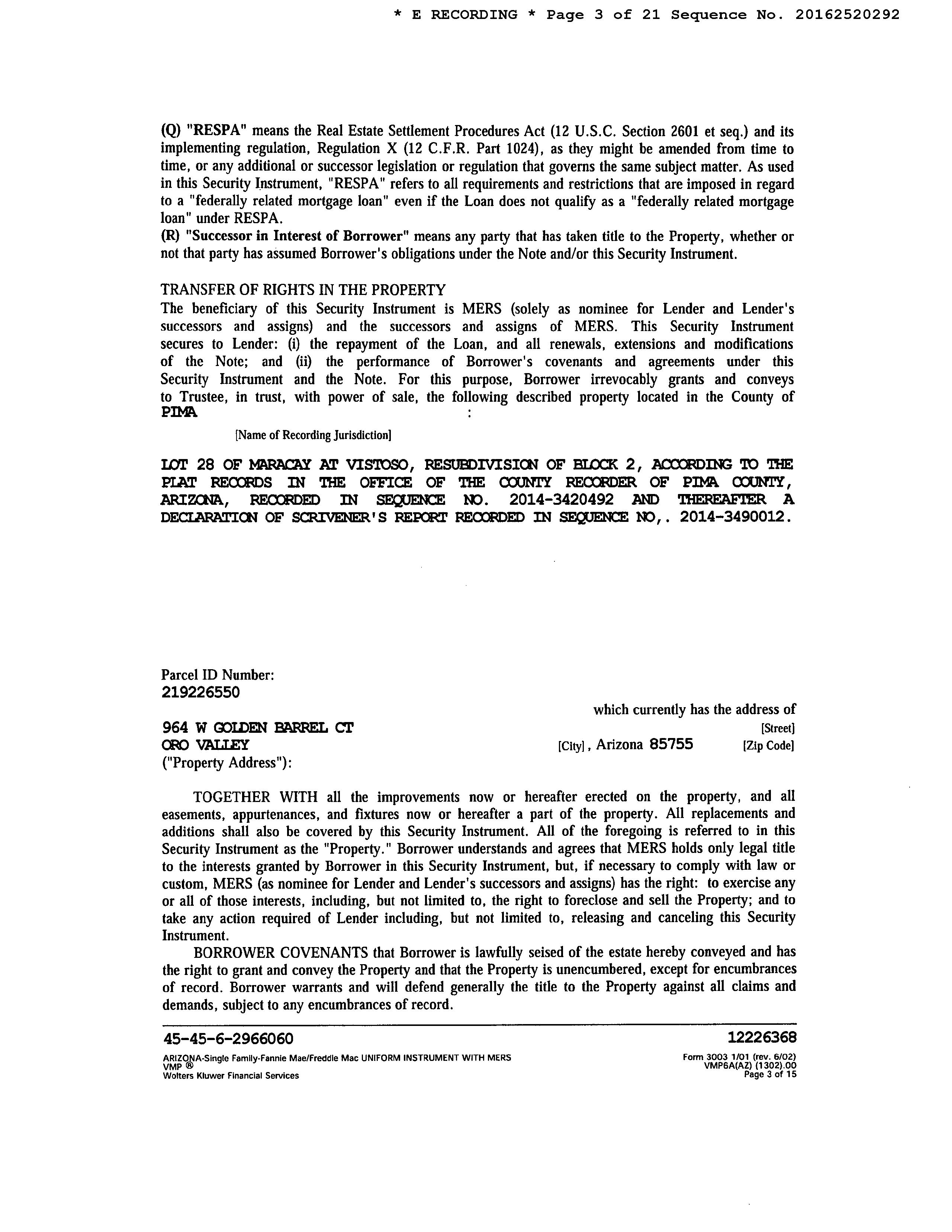 SITUS: 964 W GOLDEN BARREL CT OV