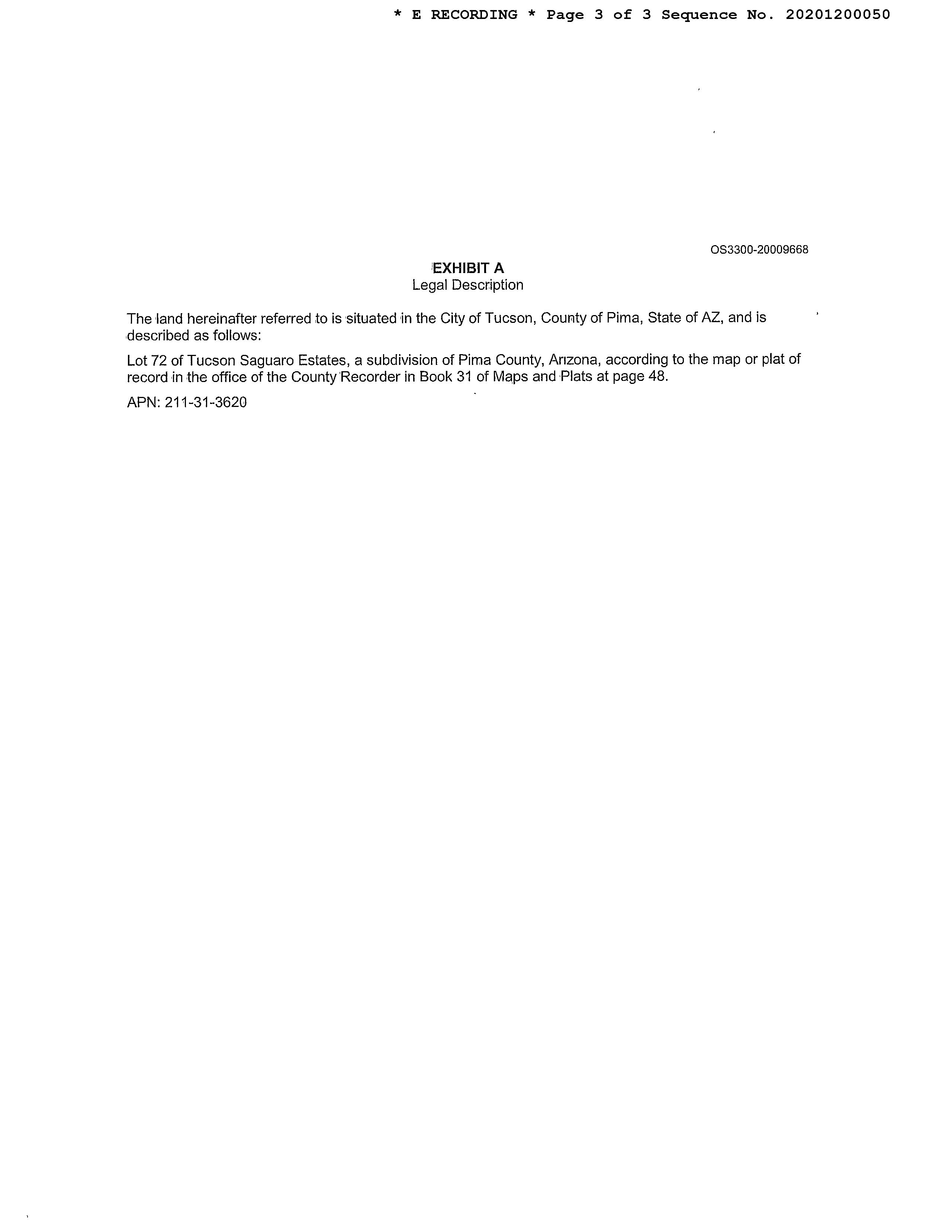 Legal Description : Tucson Saguaro Estates Lot 72