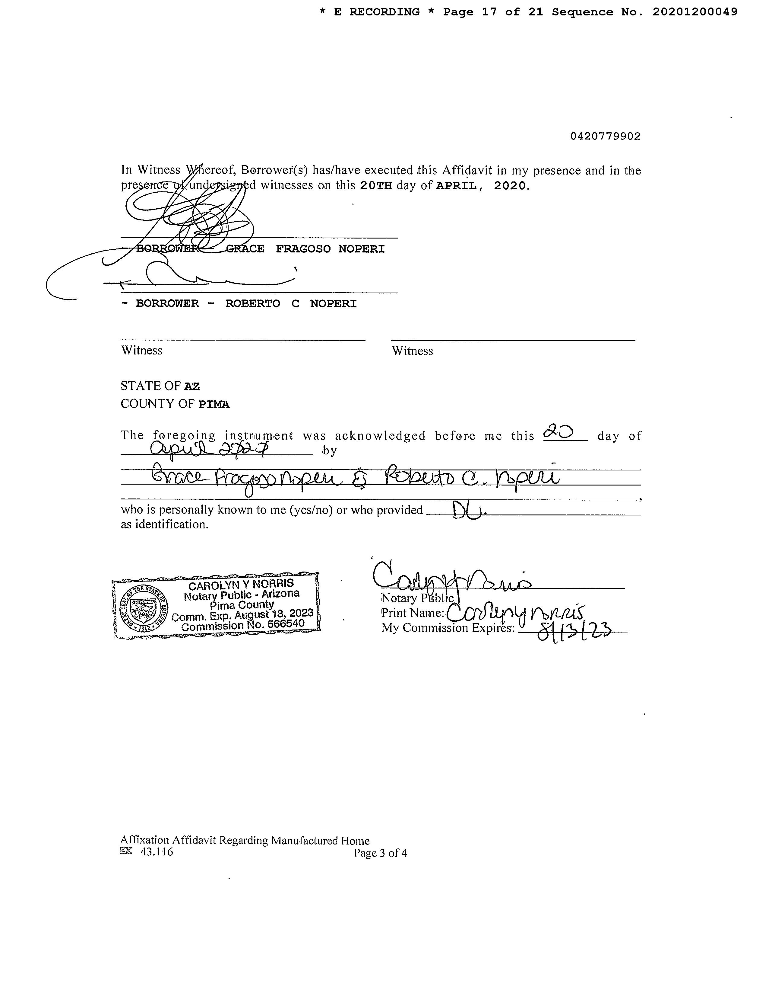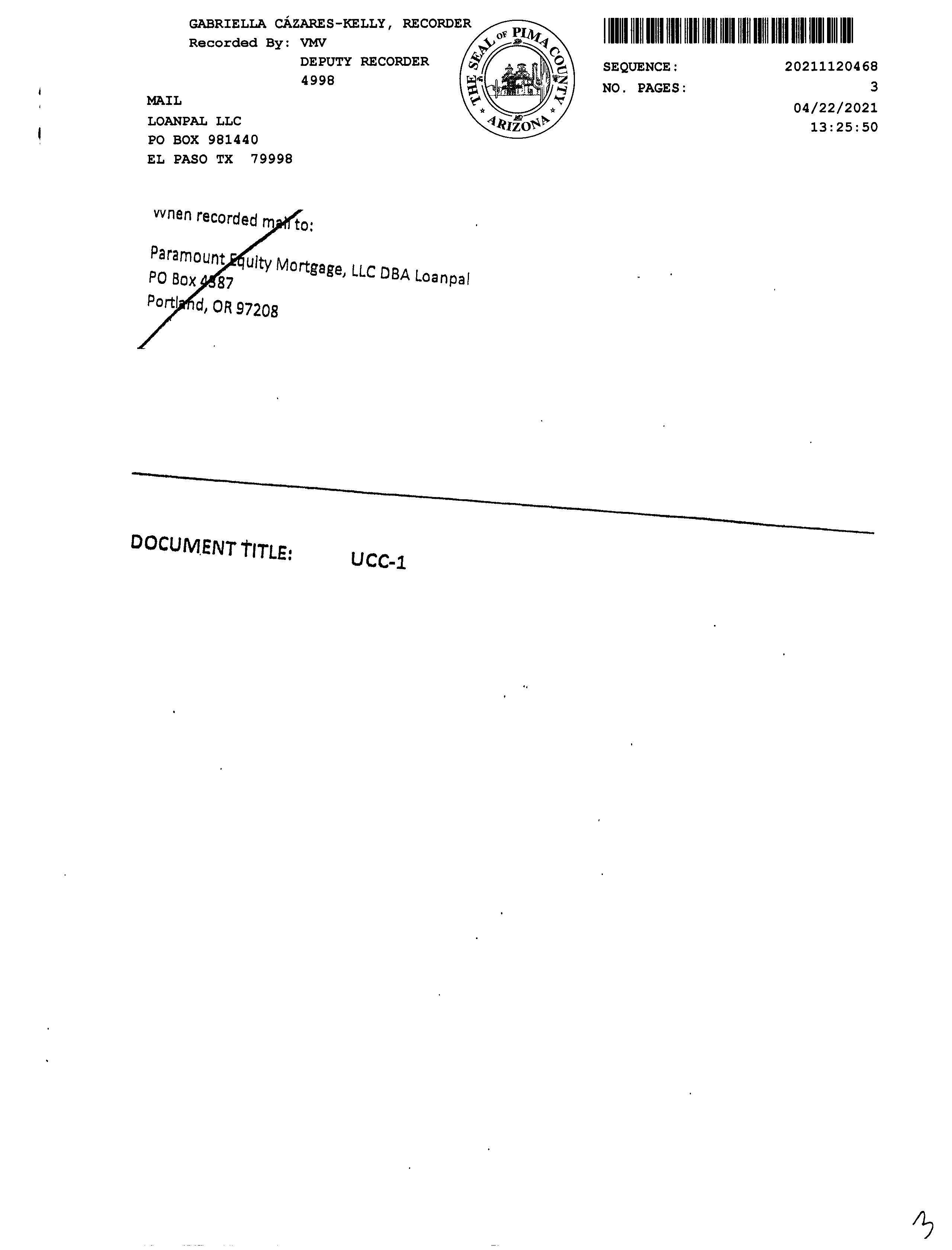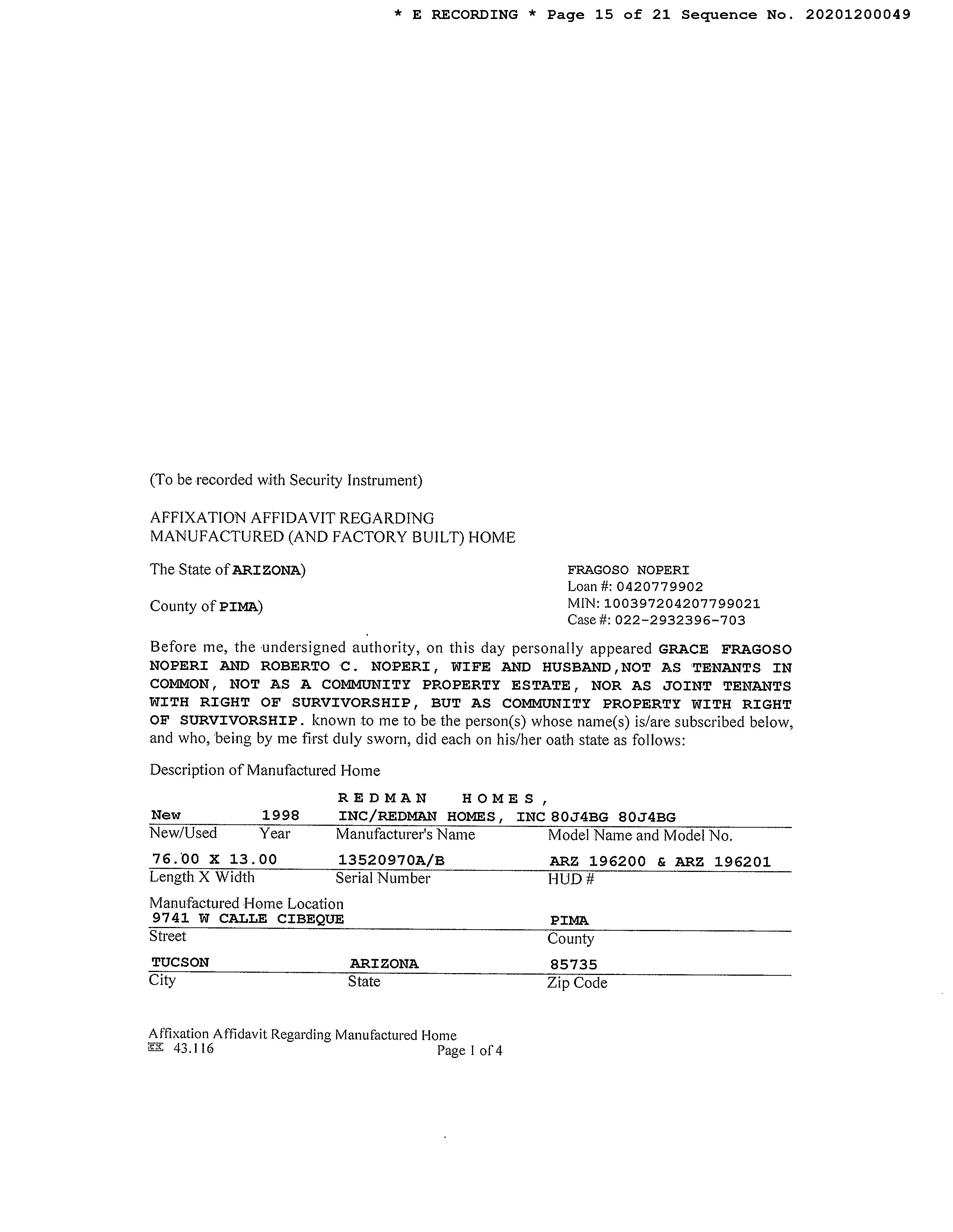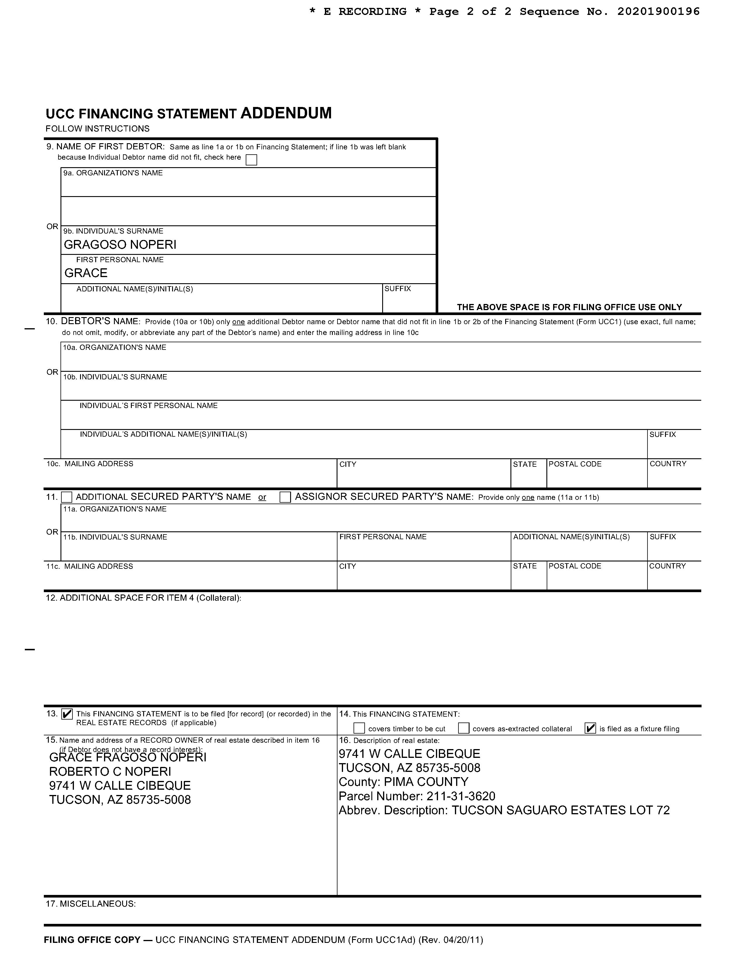 #1 2020 S Calle Pomo Tucson Az 85735 Owner Name: Soto Mayra /Garcia Samuel