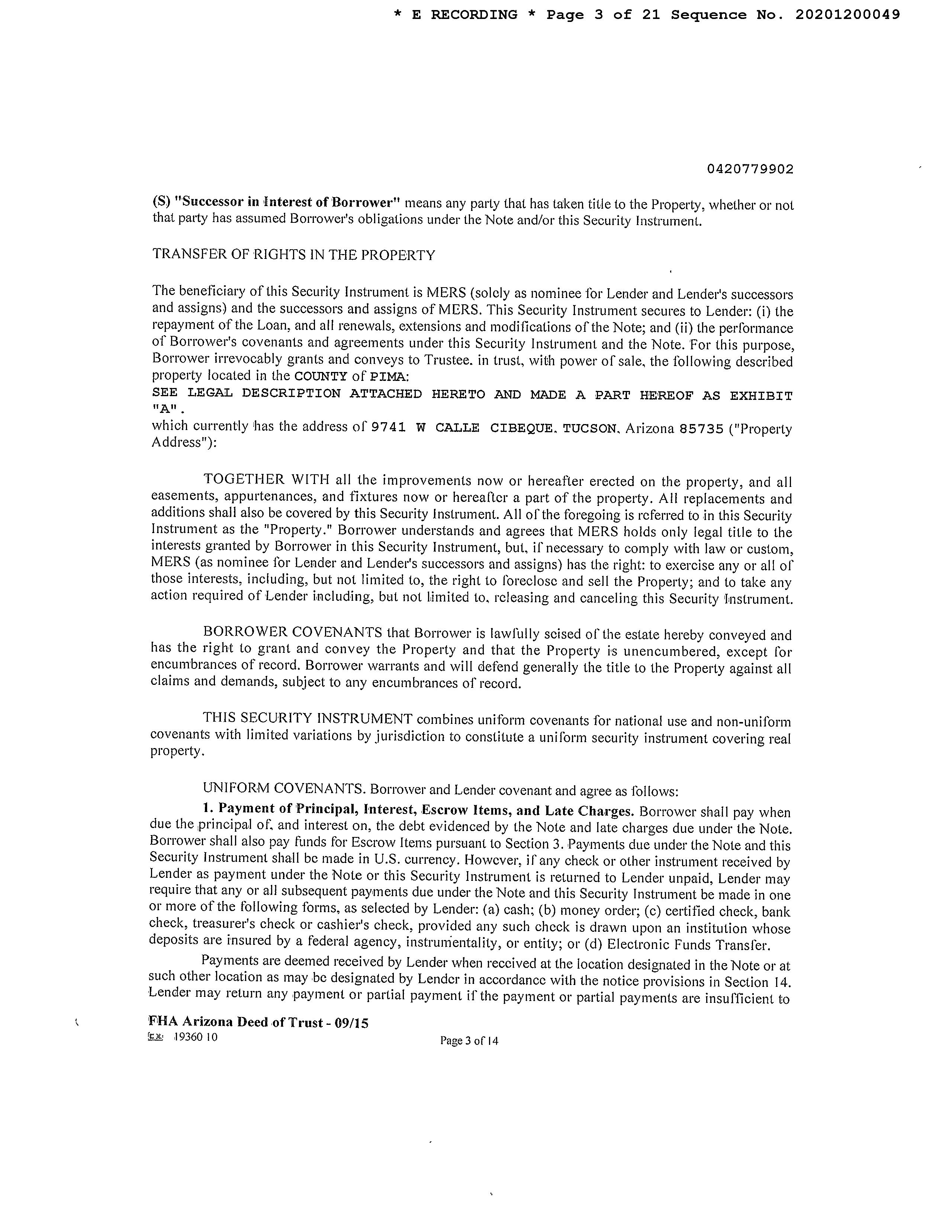 #2 9625 W Calle Cibeque Tucson Az 85735 Owner Name: Martinez Jennifer A /