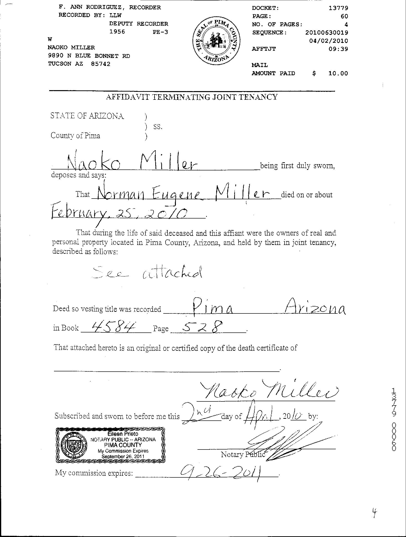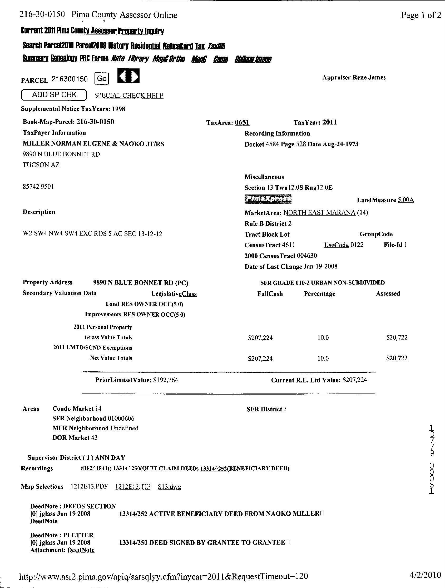 OWNER: MILLER NAOKO 4584 528 08/24/1973