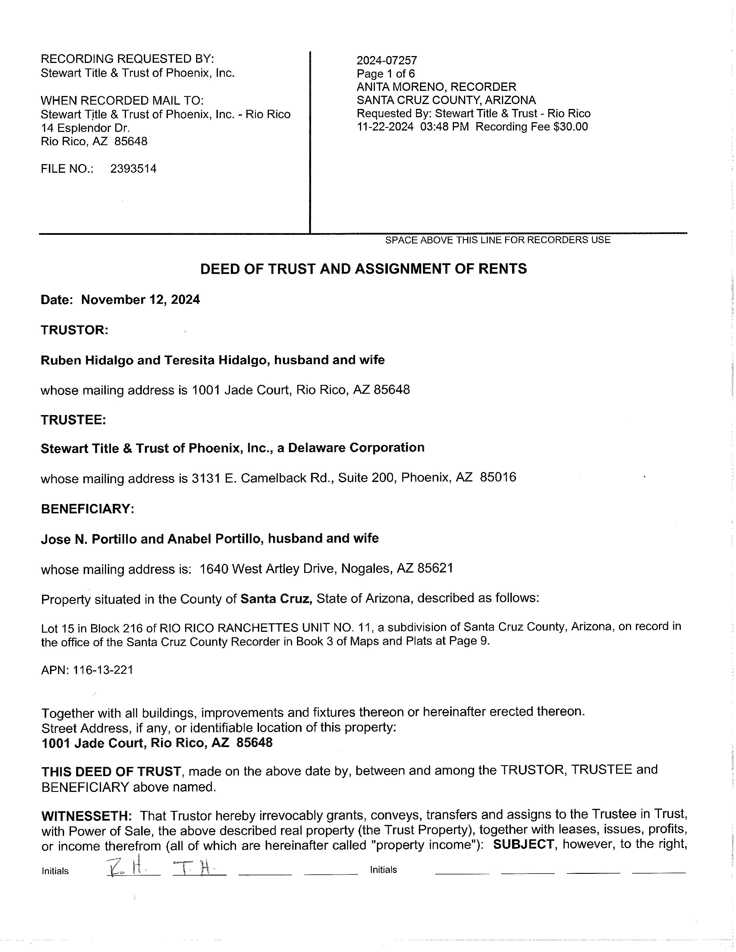 SITUS: 1001 JADE CT RIO RICO 85648-2944
