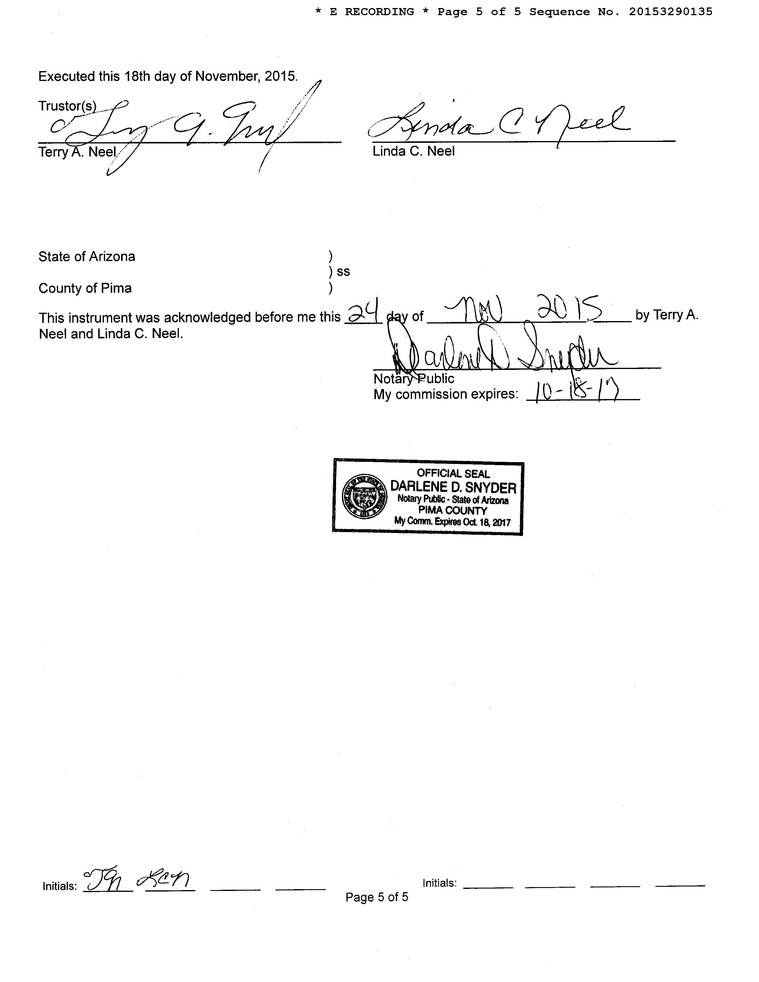 OWNER: NEEL TERRY A/LINDA C AFFIDAVIT 2015 3290134 11/25/2015