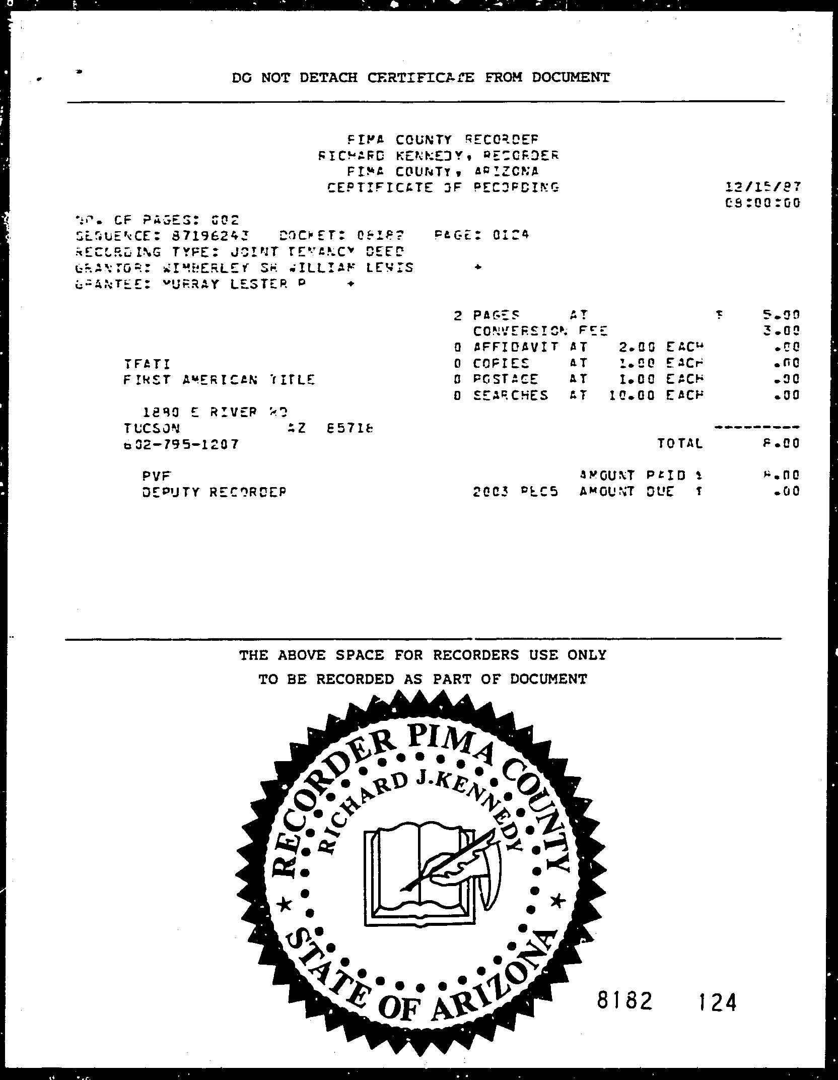 This report is not an insured product or service or a representation of the condition of title to real property. It is not an abstract, legal opinion, opinion of title, title insurance commitment or preliminary report, or any form of Title Insurance or Guaranty. This report is issued exclusively for the benefit of the Applicant therefor and may not be used or relied upon by any other person. This report may not be reproduced in any manner without First Americans prior written consent. First American does not represent or warrant that the information herein is complete or free from error, and the information herein is provided without any warranties of any kind, as-is, and with all faults. As a material part of the consideration given in exchange for the issuance of this report, recipient agrees that First Americans sole liability for any loss or damage caused by an error or omission due to inaccurate information or negligence in preparing this report shall be limited to the fee charged for the report. Recipient accepts this report with this limitation and agrees that First American would not have issued this report but for the limitation of liability described above. First American makes no representation or warranty as to the legality or propriety of recipient's use of the information herein.