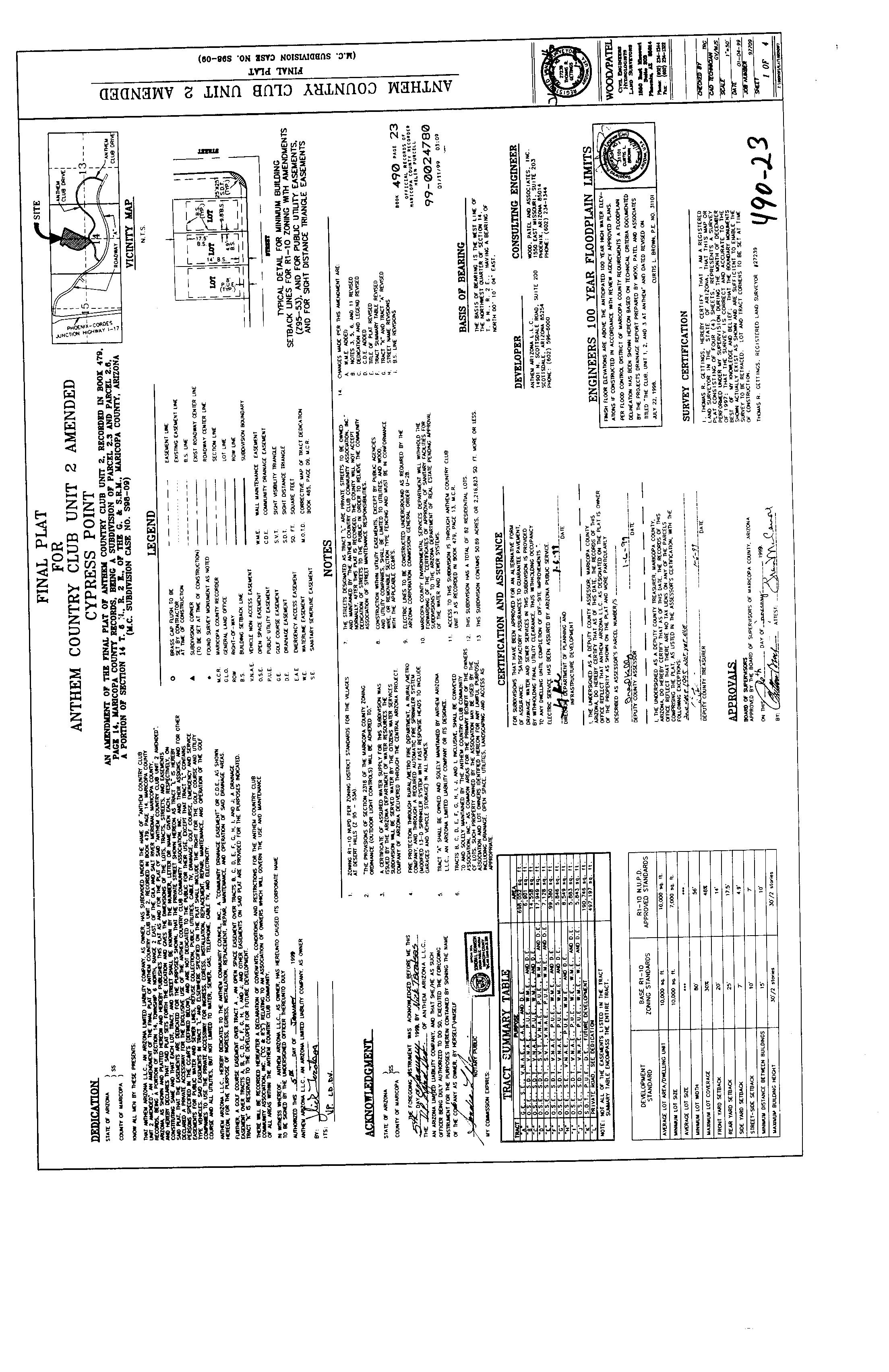 Anthem Country Club Unit 4 Amended, according to the plat of record in the office of the County Recorder of Maricopa County, Arizona, recorded in Book 490, Page 25.