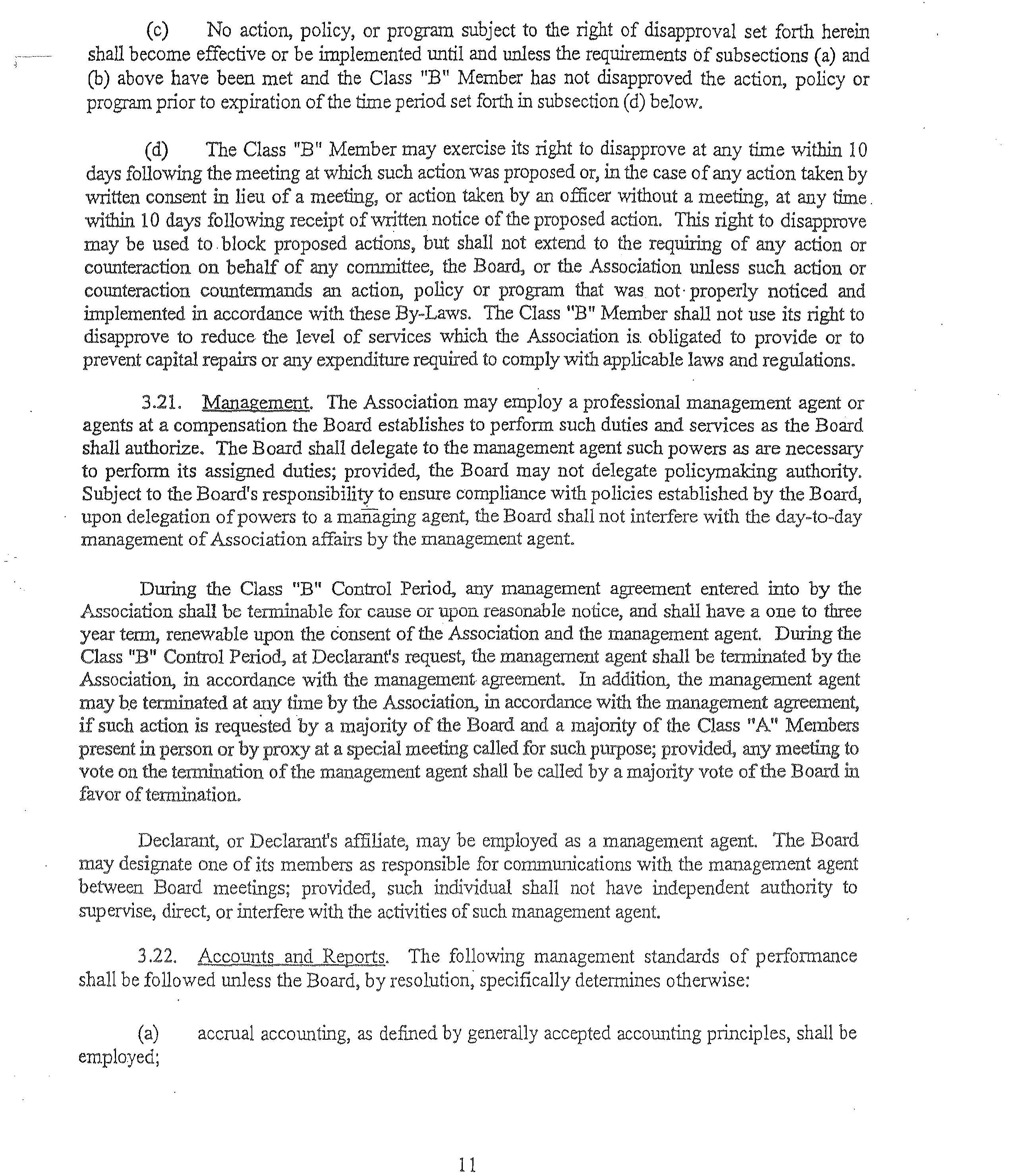 If either theUSDepartment ofHousmg and Urban DevelopmentortheUS Department of Veterans Affairs IS msunng or guaranteeing the Mortgage on any Lot, then the following actions shall requtre the pnor approval of Members representing notless than two-thirds (2/3) of the total Class "A" votes In the Assocrenon and the consent of the Class "B'' Member, If such