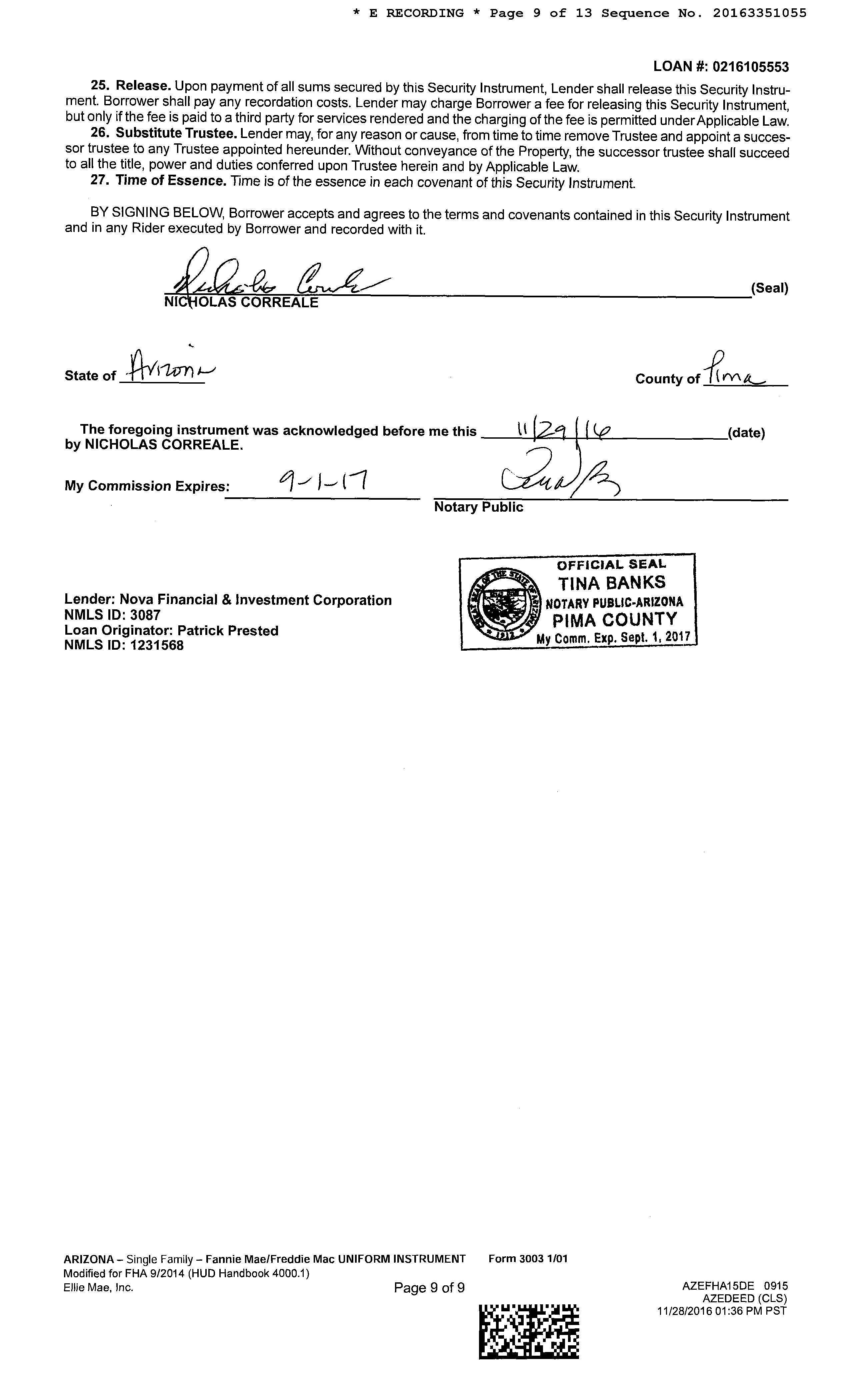 Know that our wiring instructions do not change so any communication is suspect. Our banking institution is First American Trust.