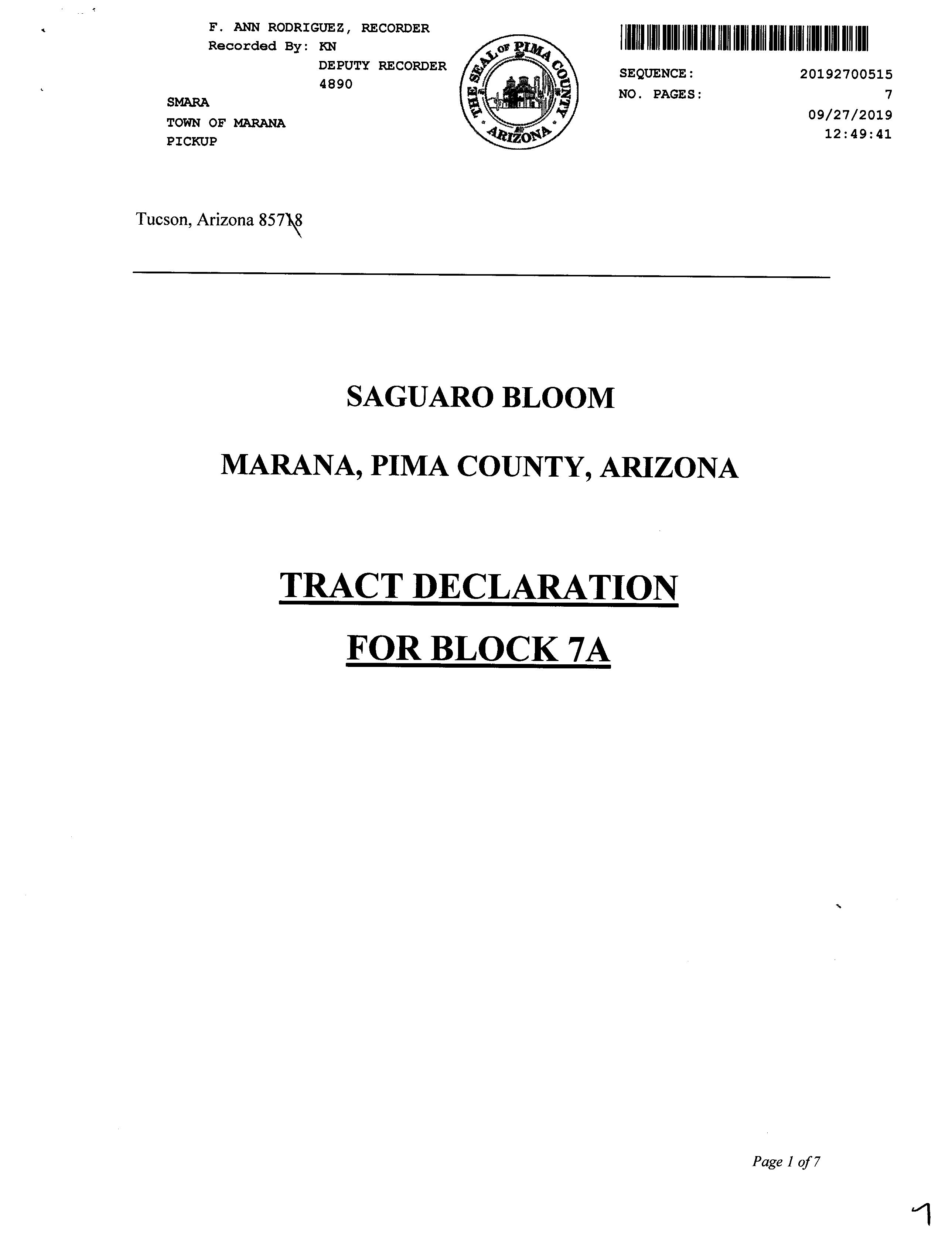7a Sq20192700513 Lot 196 Exc Mineral Rights Below 30-ft County : Pima, Az APN : 216-44-1960 Census Tract / Block : 44.36 / 2 Subdivision : Saguaro Bloom 7a Township-Range-