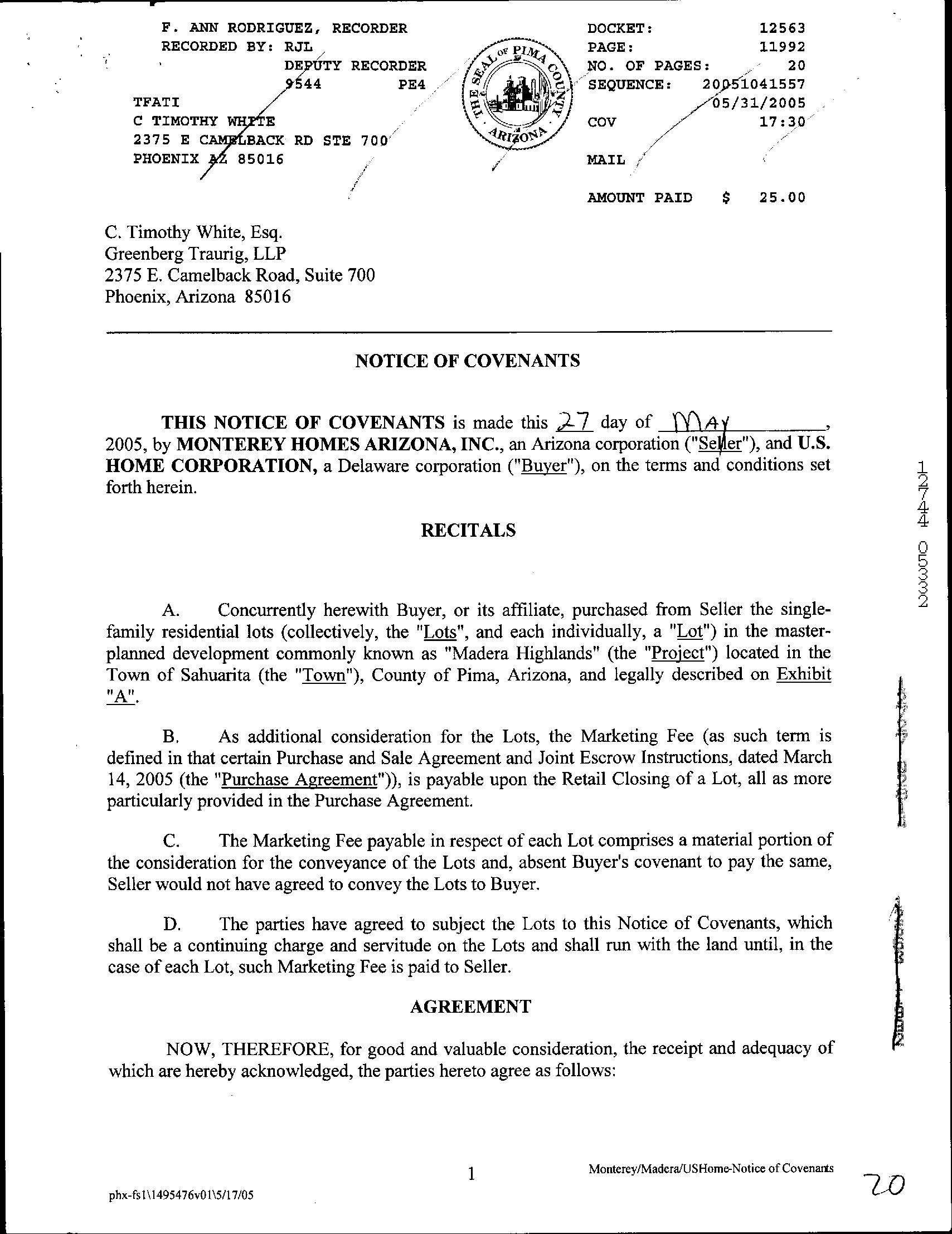Mailing Address : 1040 E Mowry Wash Ln, Sahuarita AZ 85629-6669 H072