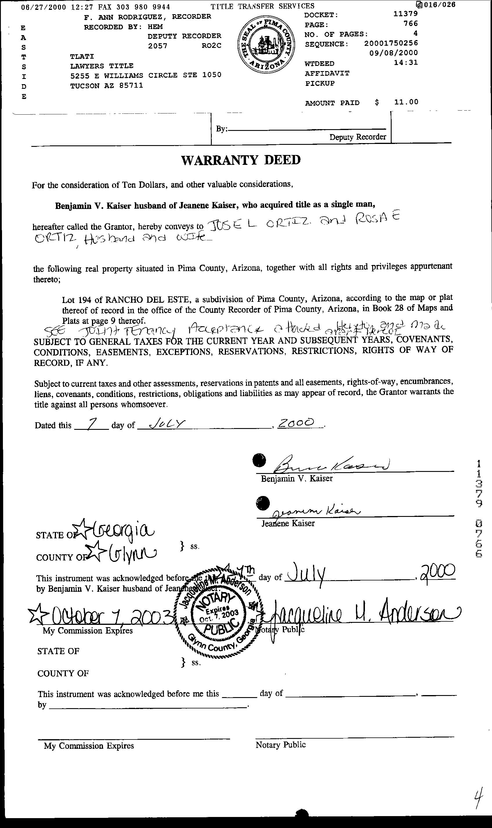 Recording/Sale Date : 09/08/2000 / 09/08/2000