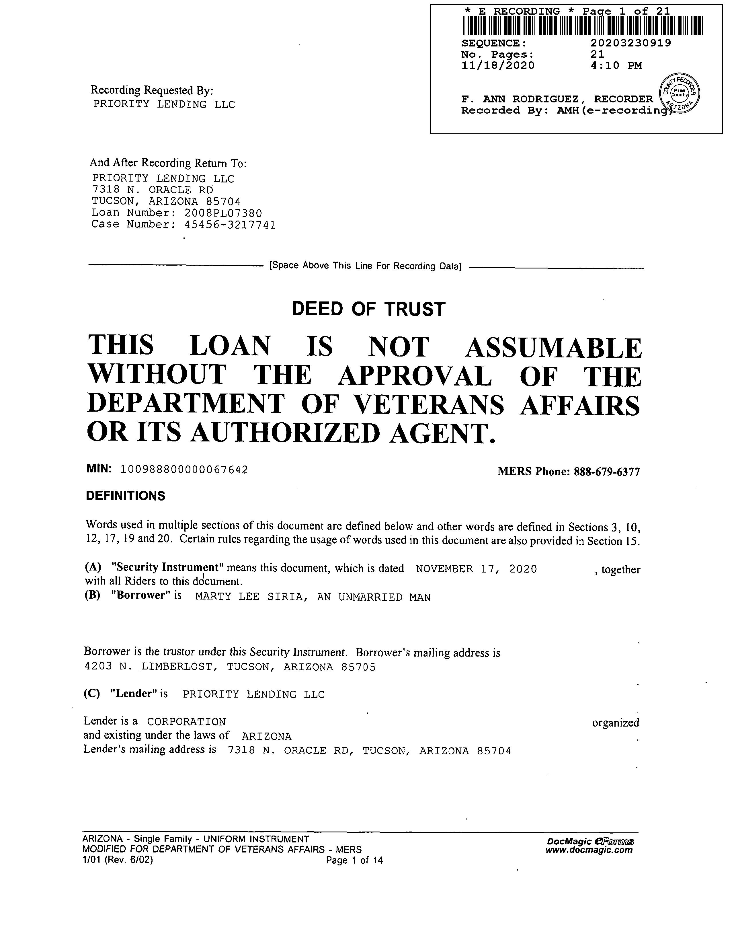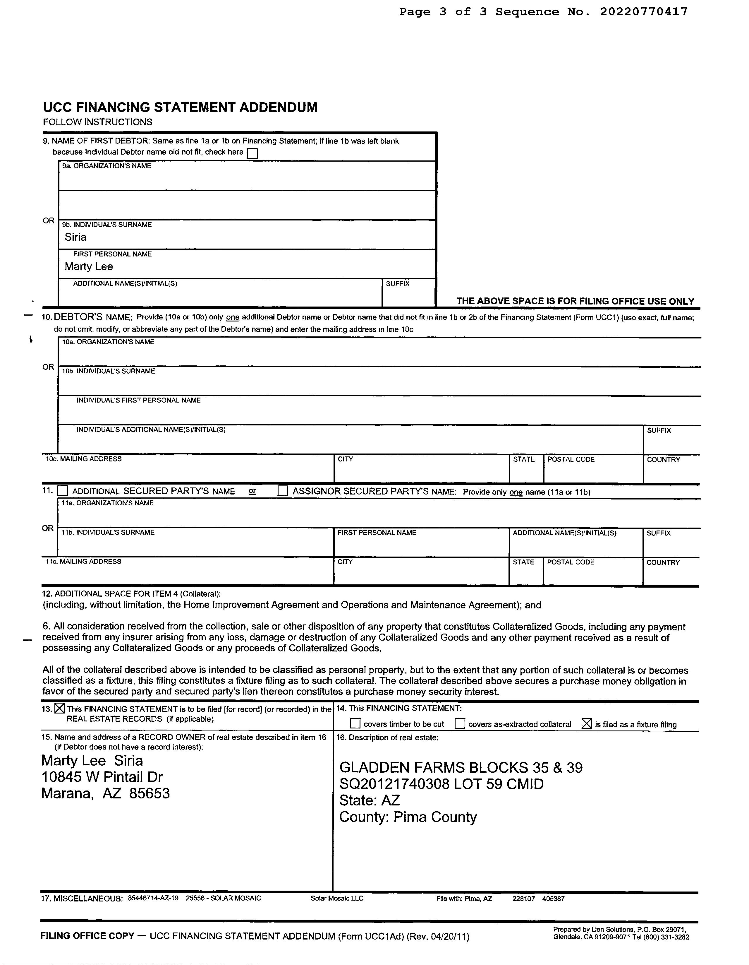 Mailing Address : 5326 N La Cholla Blvd, Tucson AZ 85741-3815 C018