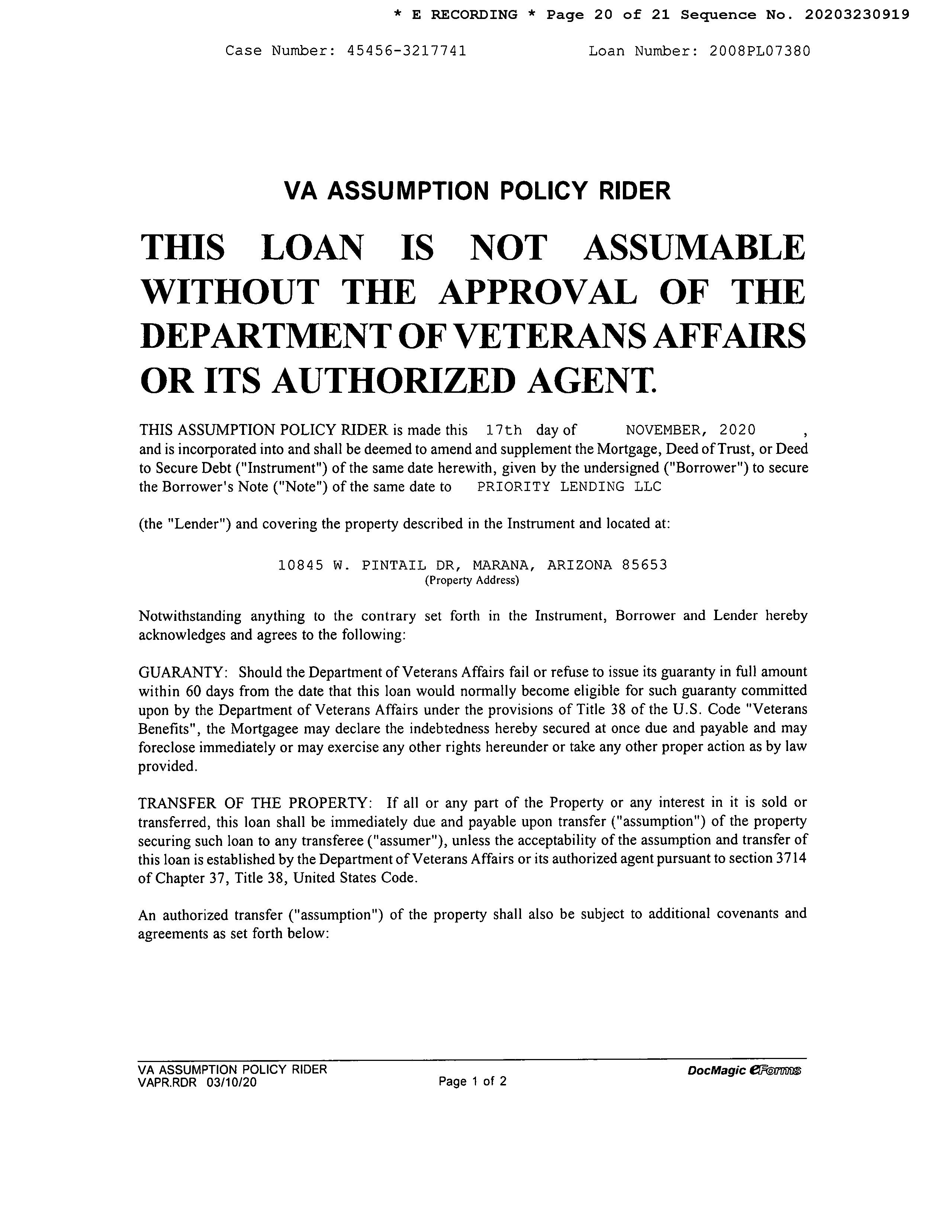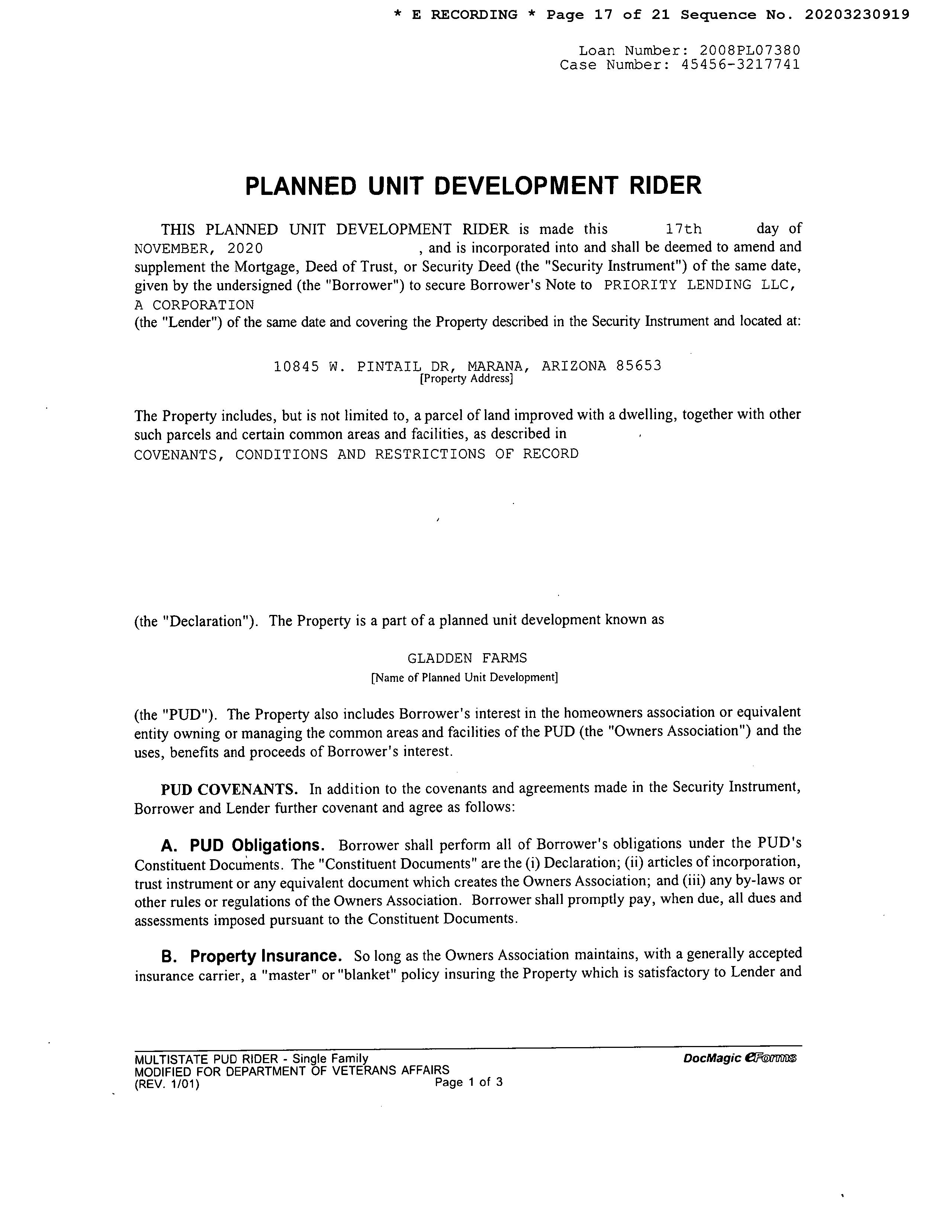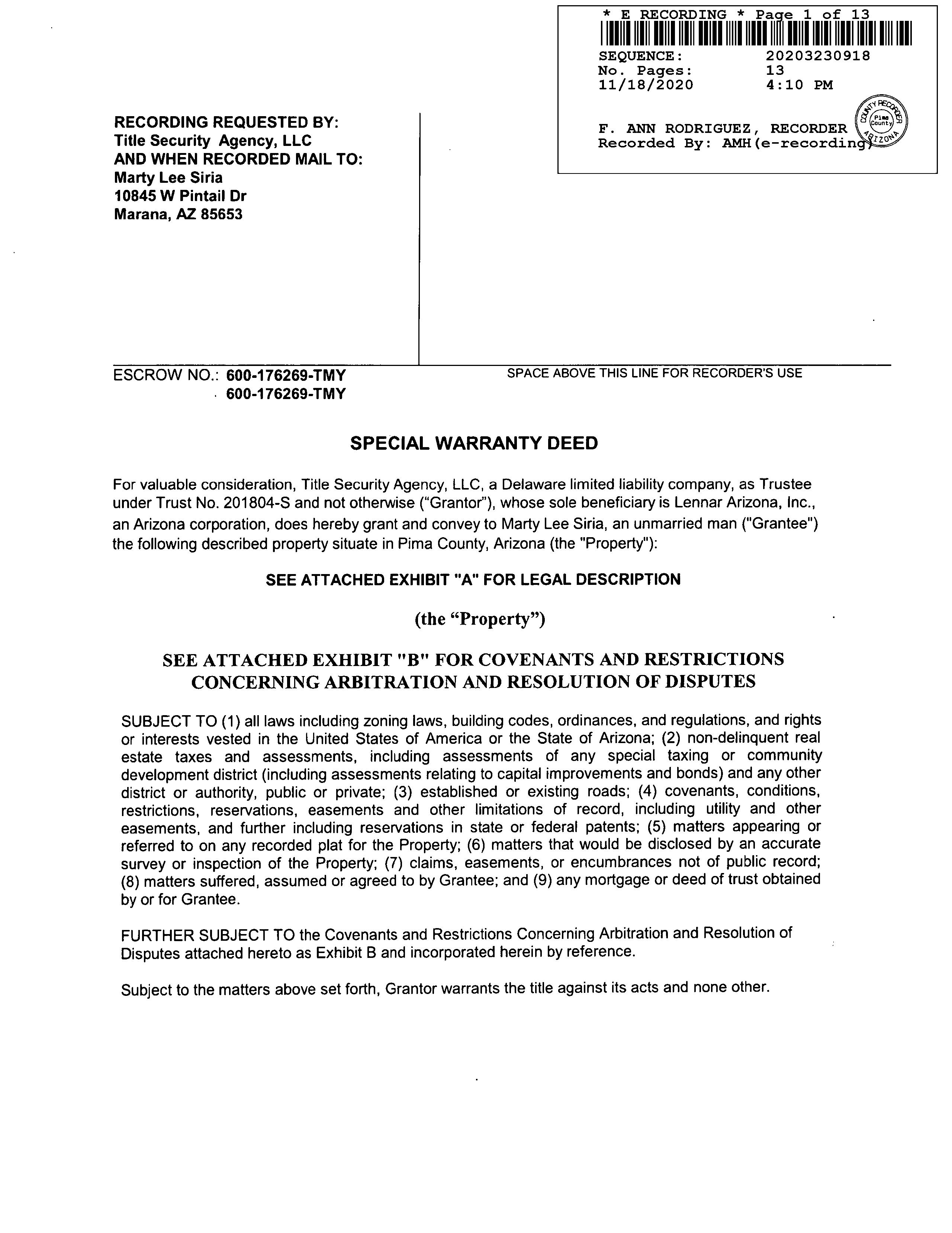 Subject Property : 10845 W Pintail Dr Marana AZ 85653