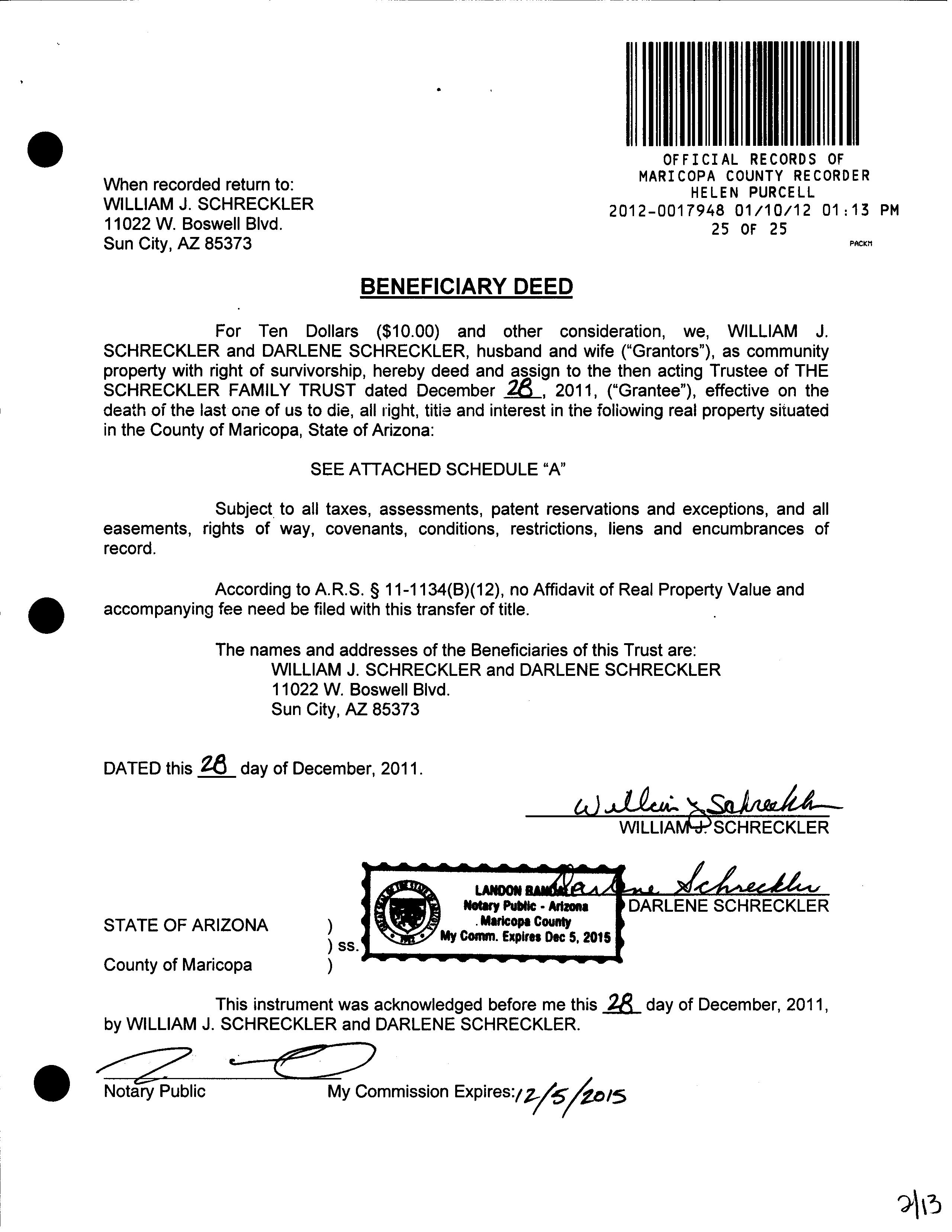 OWNER: SCHRECKLER WILLIAM J/DARLENE 2012 17948 01/10/2012