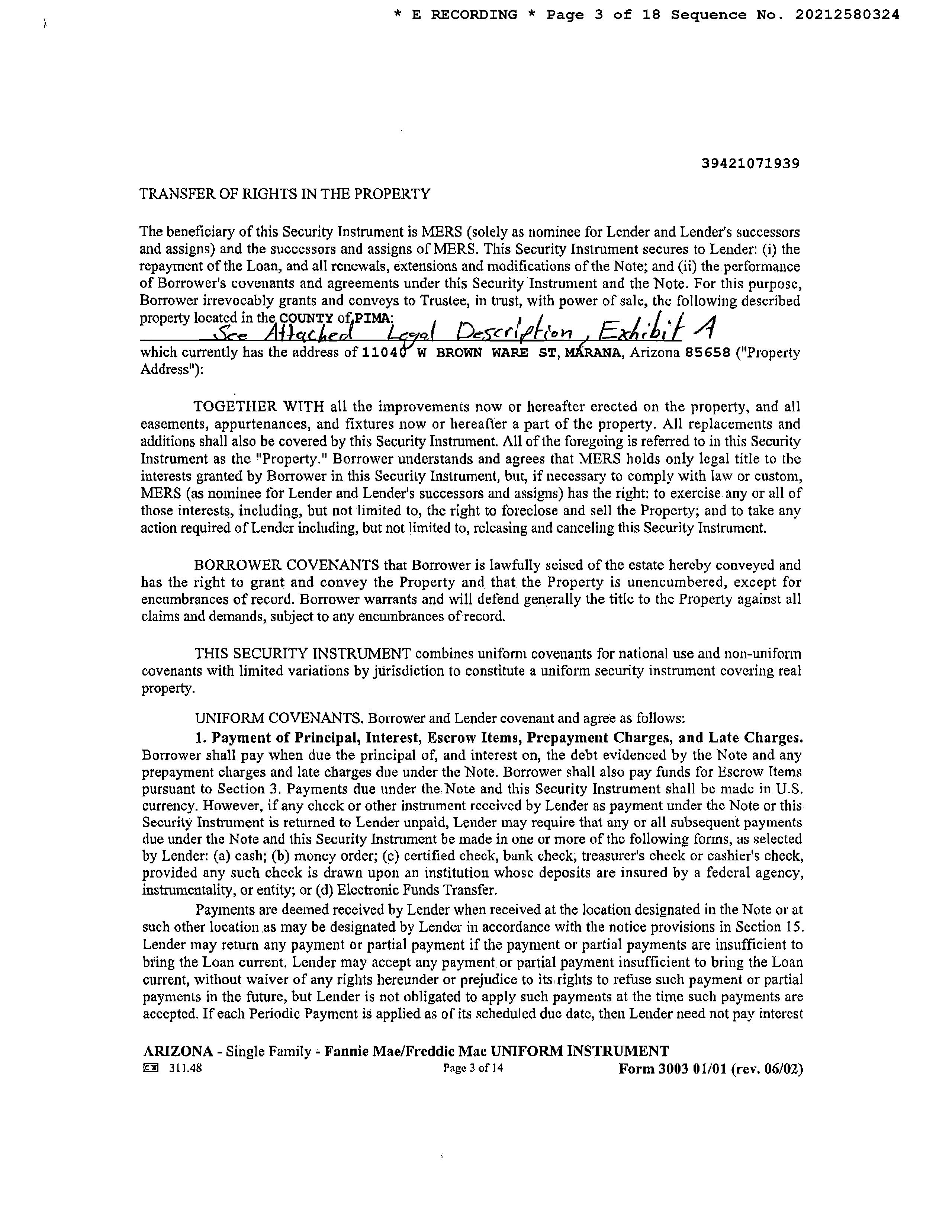 Subject Property : 11040 W Brown Ware St Marana AZ 85658