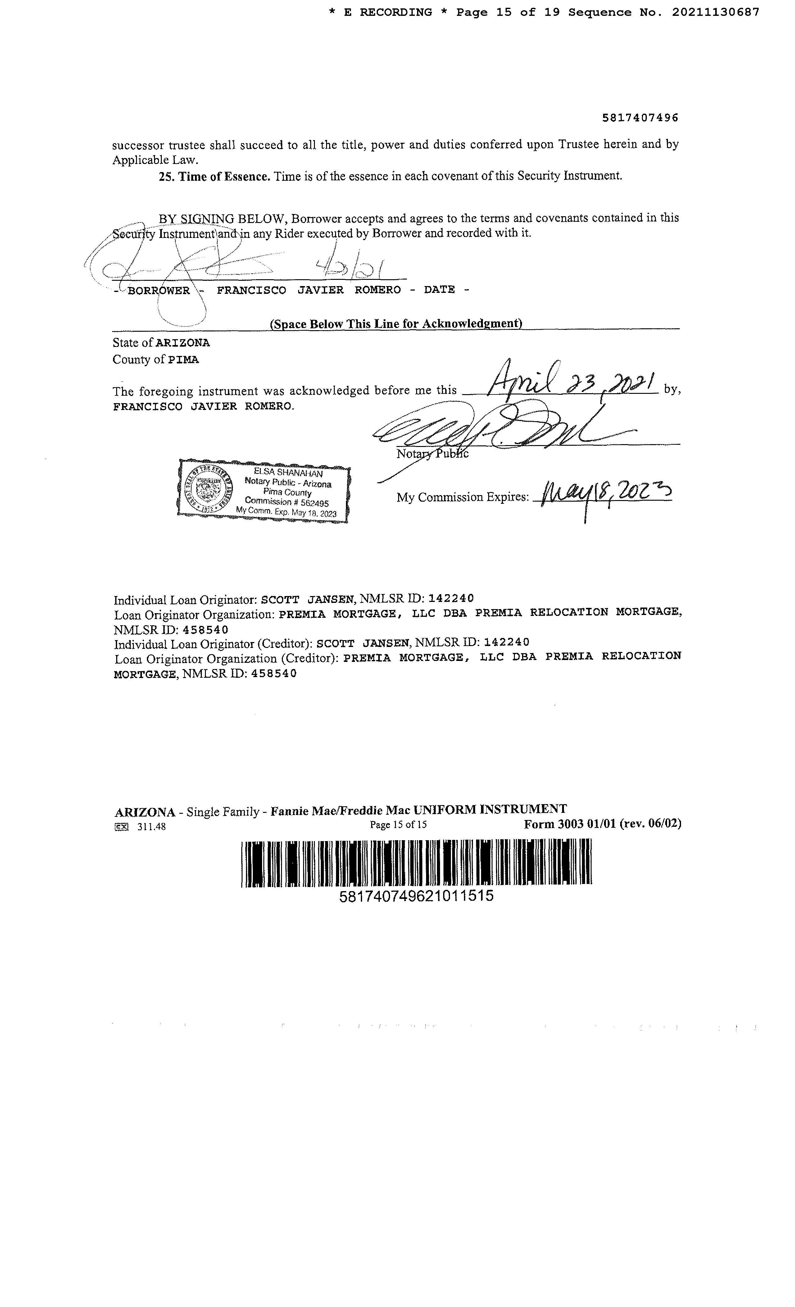 Owner Name: Romero Francisco Javier / APN / Alternate APN: 305-07-2340 / Deed Type: Special Warranty Deed