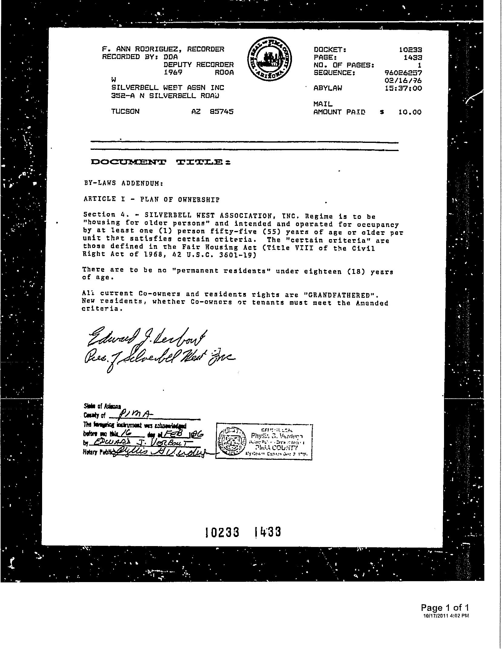 Subdivision / Tract: Silverbell West / Lot Size: 44,004