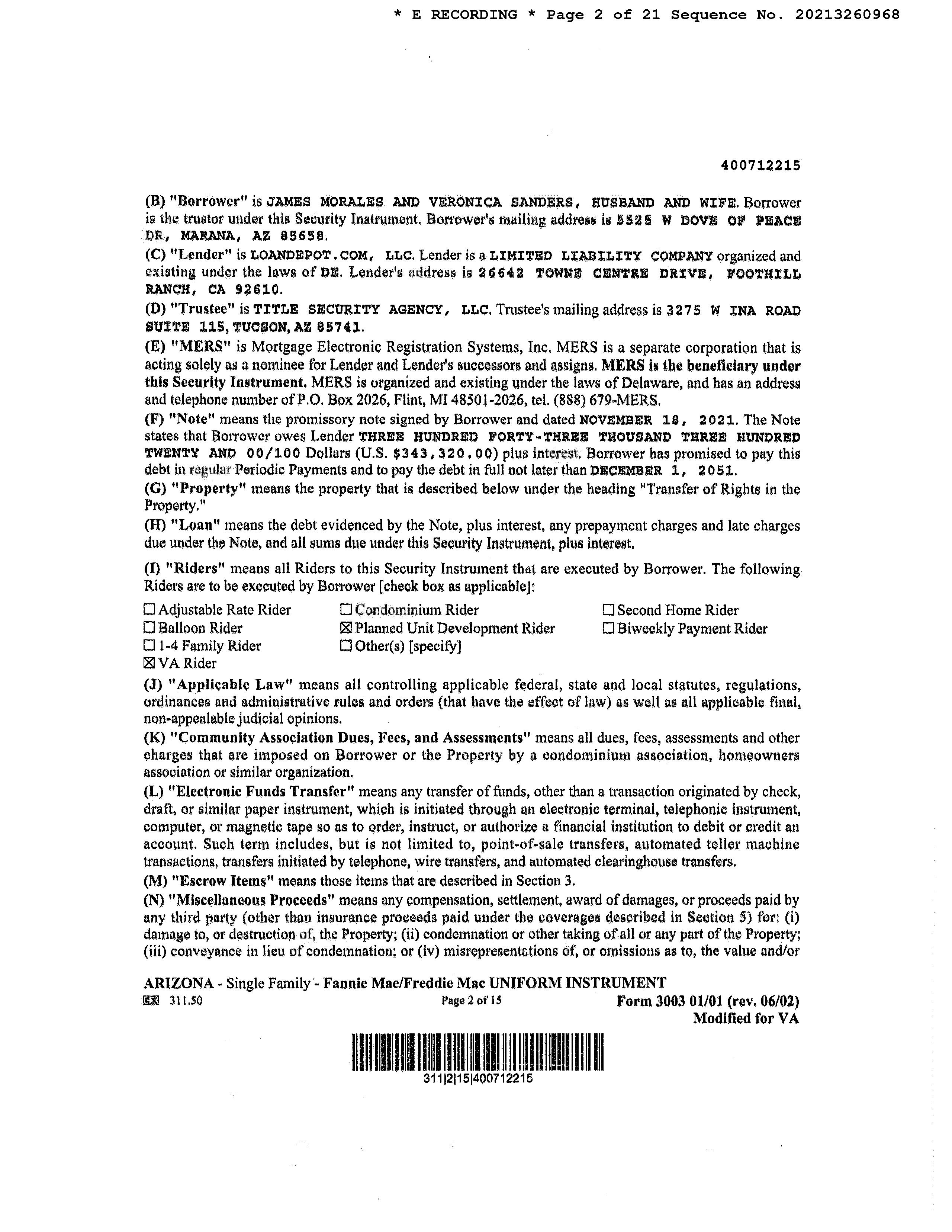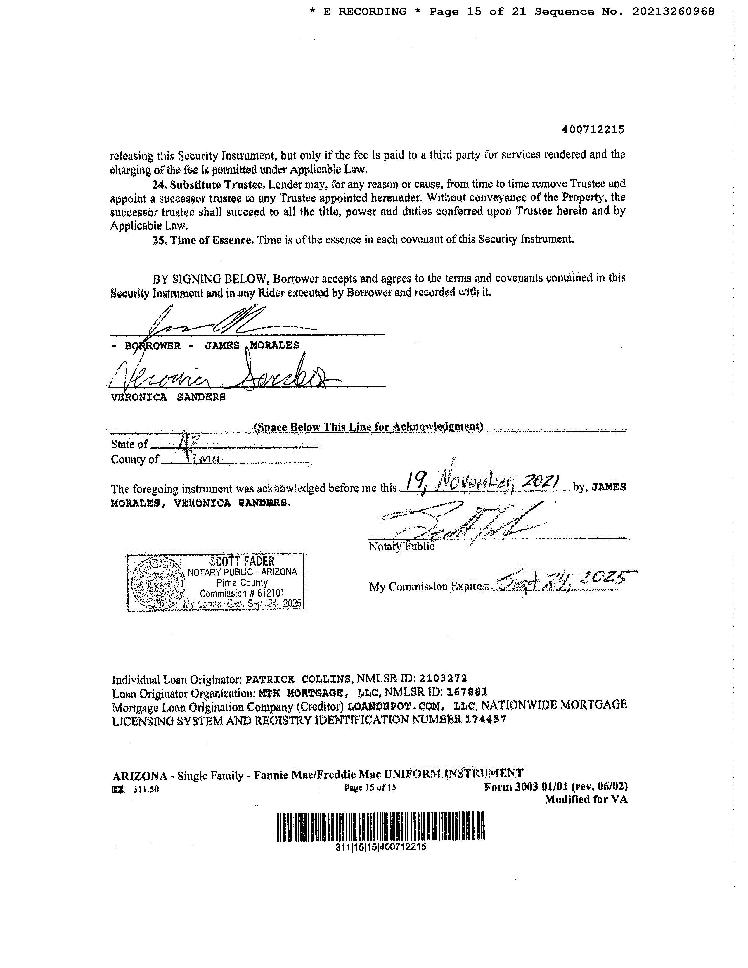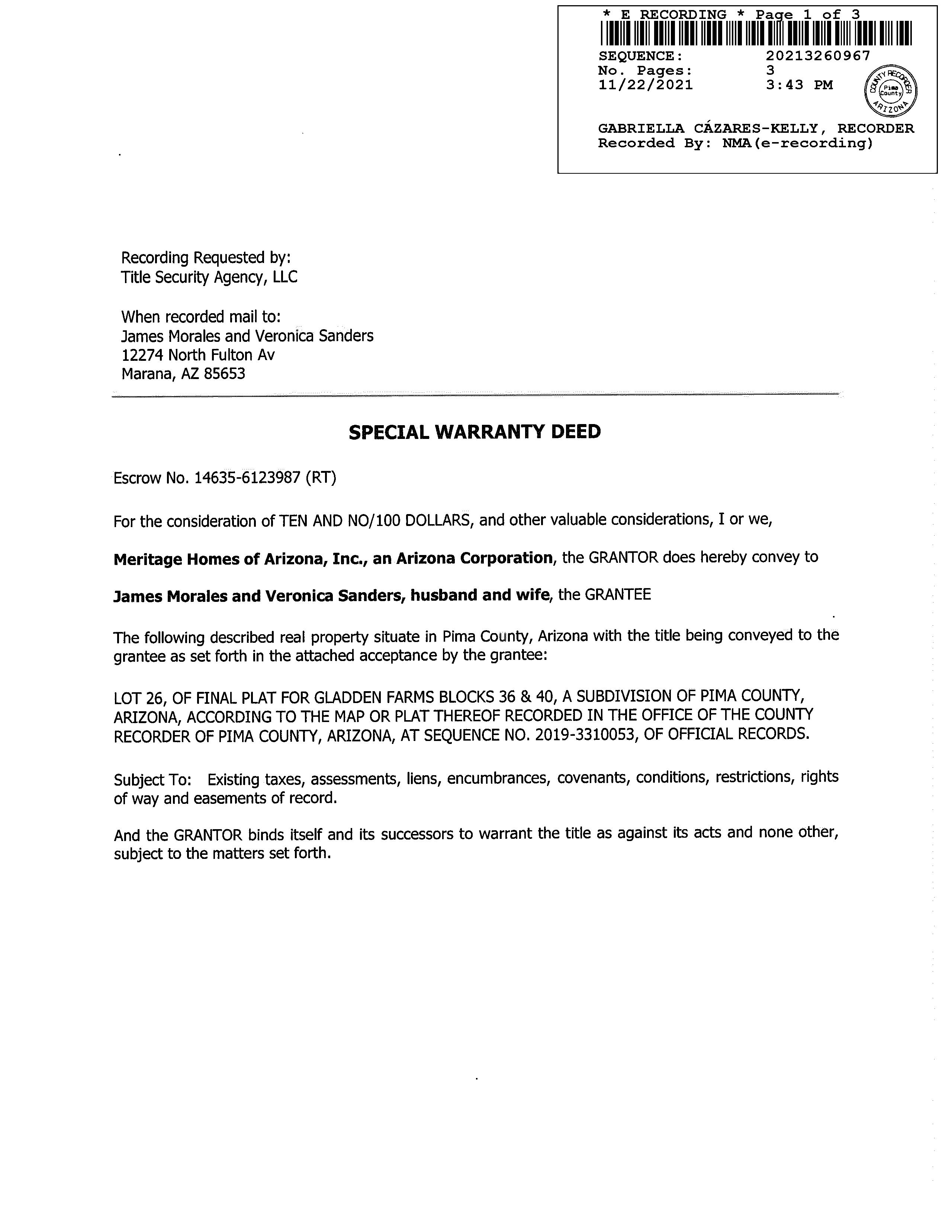 OWNER: MORALES JAMES & SANDERS VER AFFIDAVIT 2021 3260967 11/22/2021