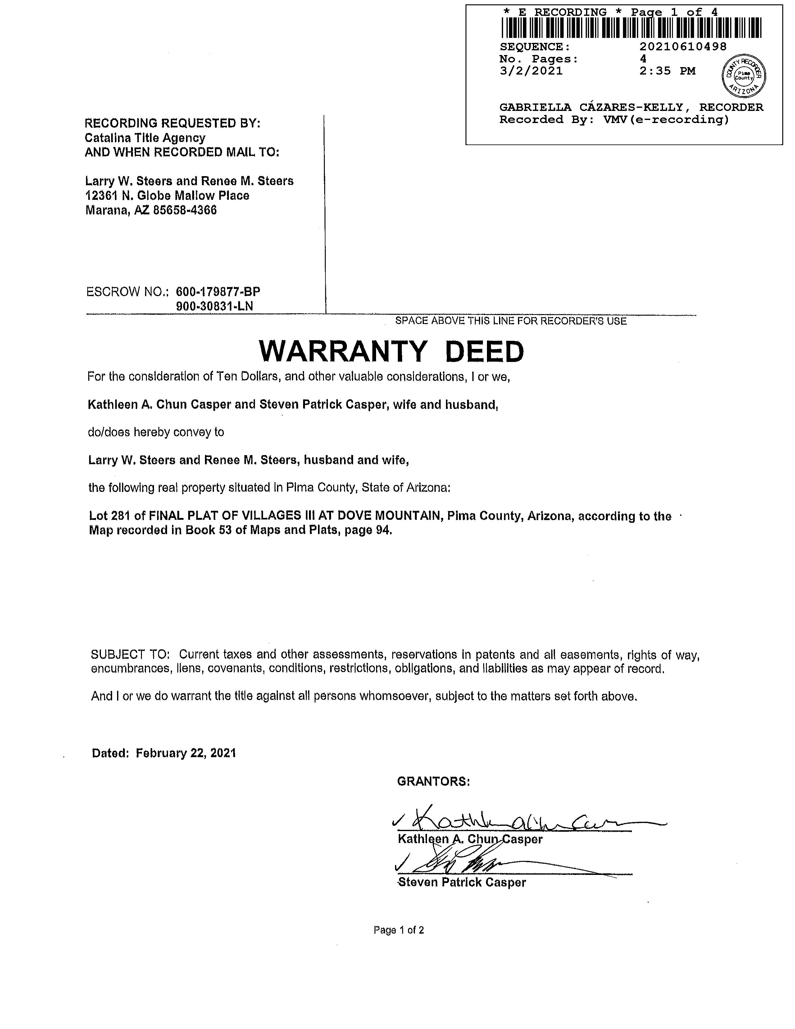 Mailing Address : 12361 N Globe Mallow Pl, Marana AZ 85658-4366 H021