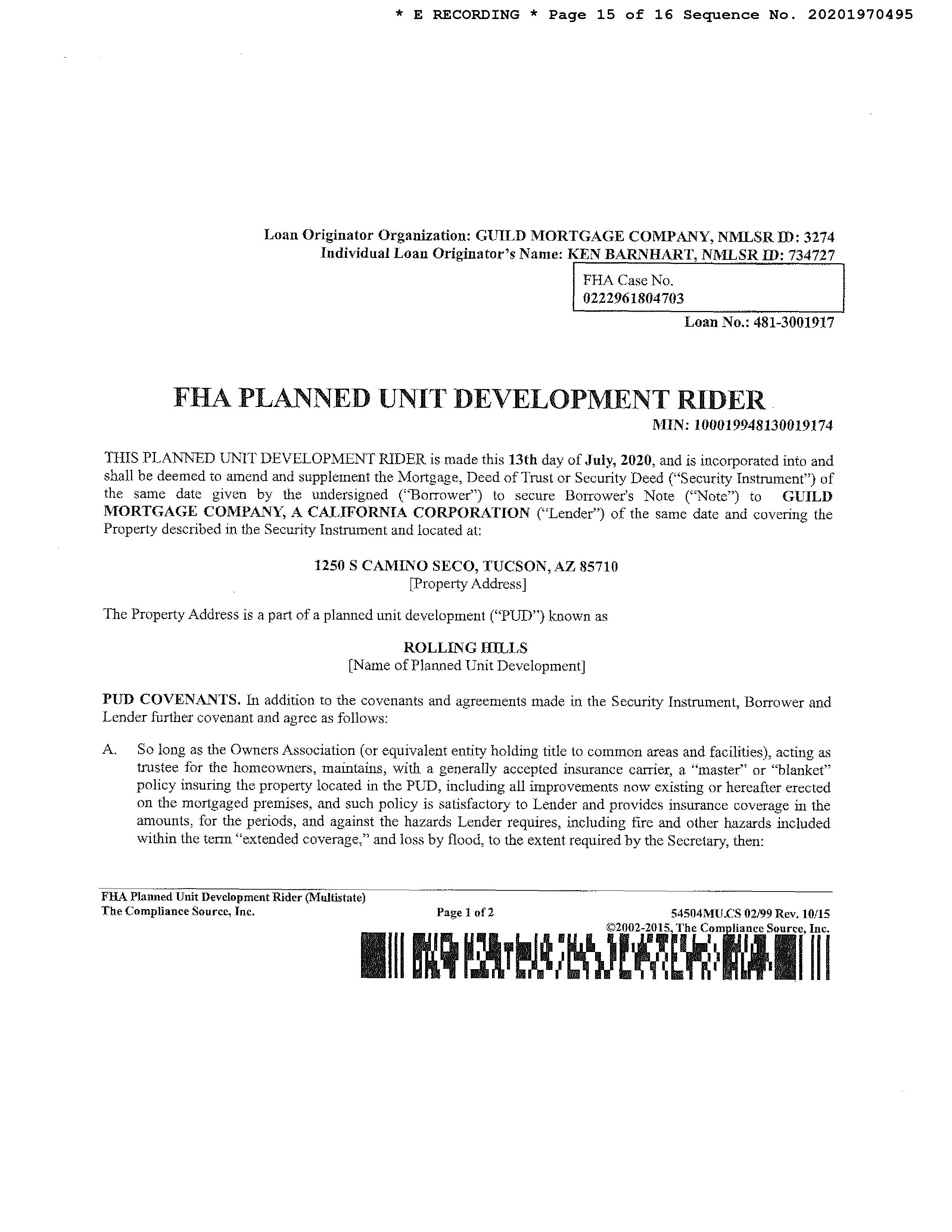 Subject Property : 1250 S Camino Seco Tucson AZ 85710
