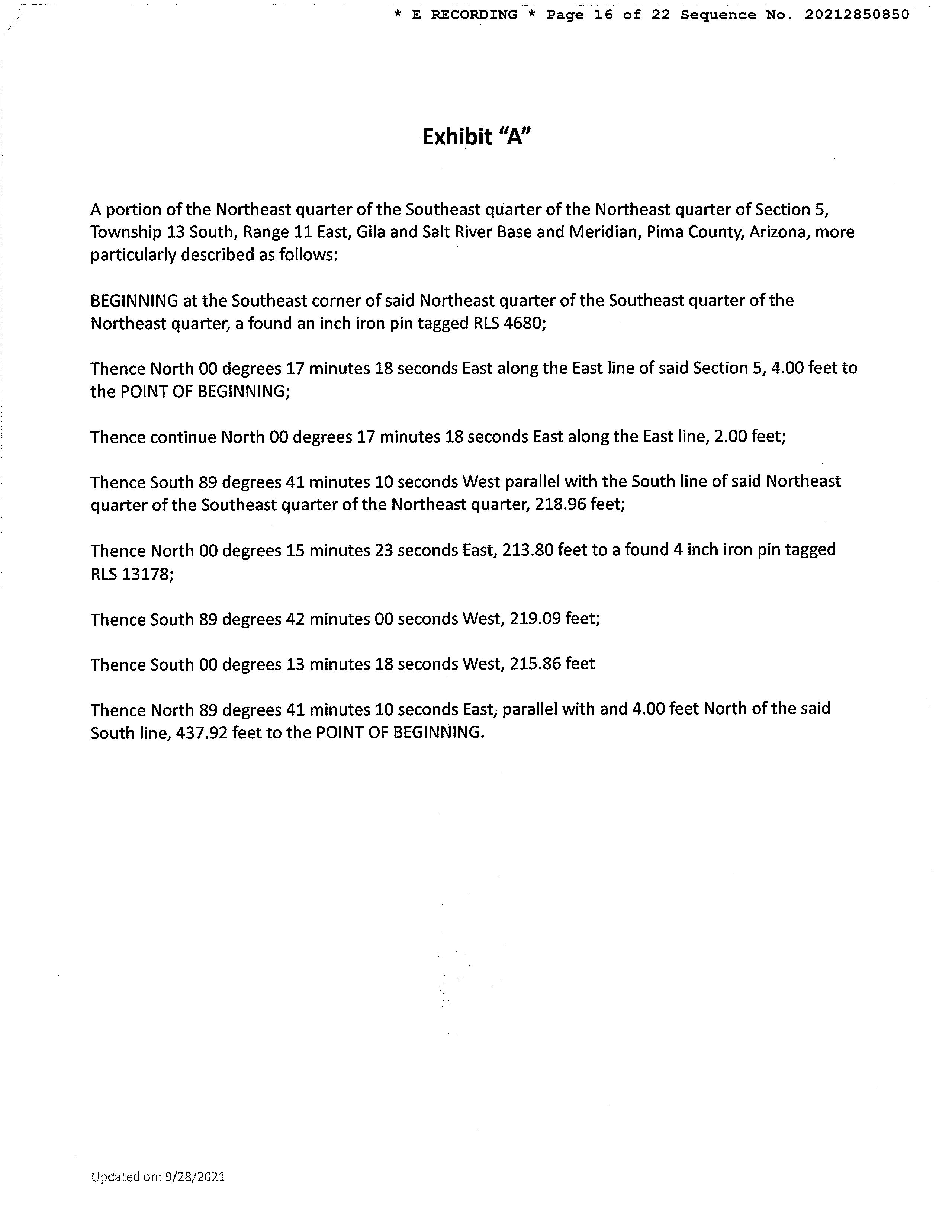 Legal Description : Ptn E437.92' N215.86' S219.91' Ne4 Se4 Ne4 1.10 Ac Sec 5-13-11