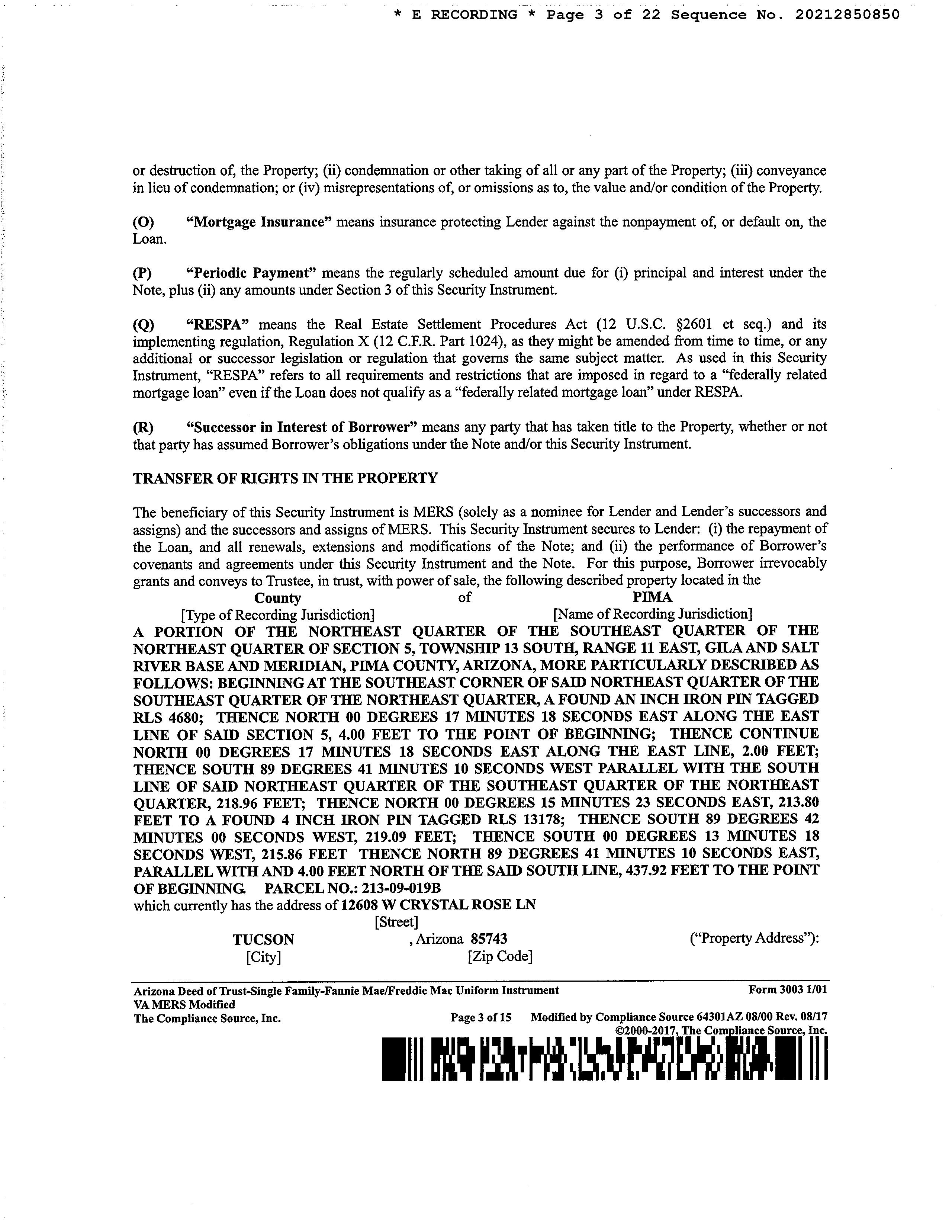 Subject Property: 12608 W Crystal Rose Ln Tucson Az 85743