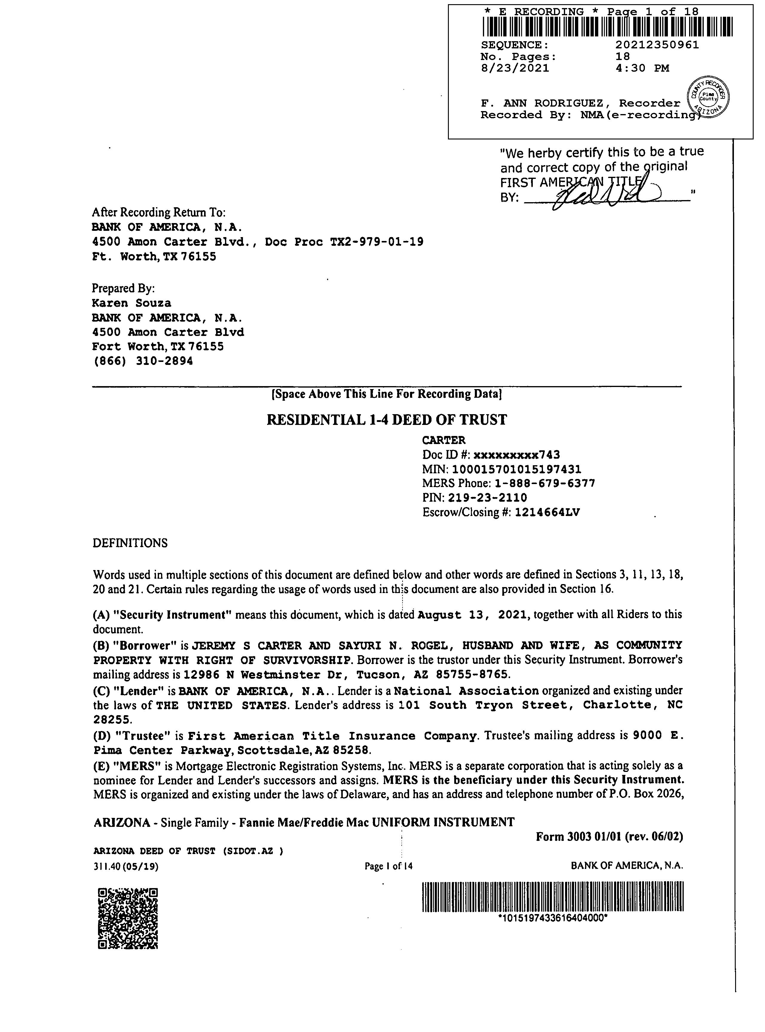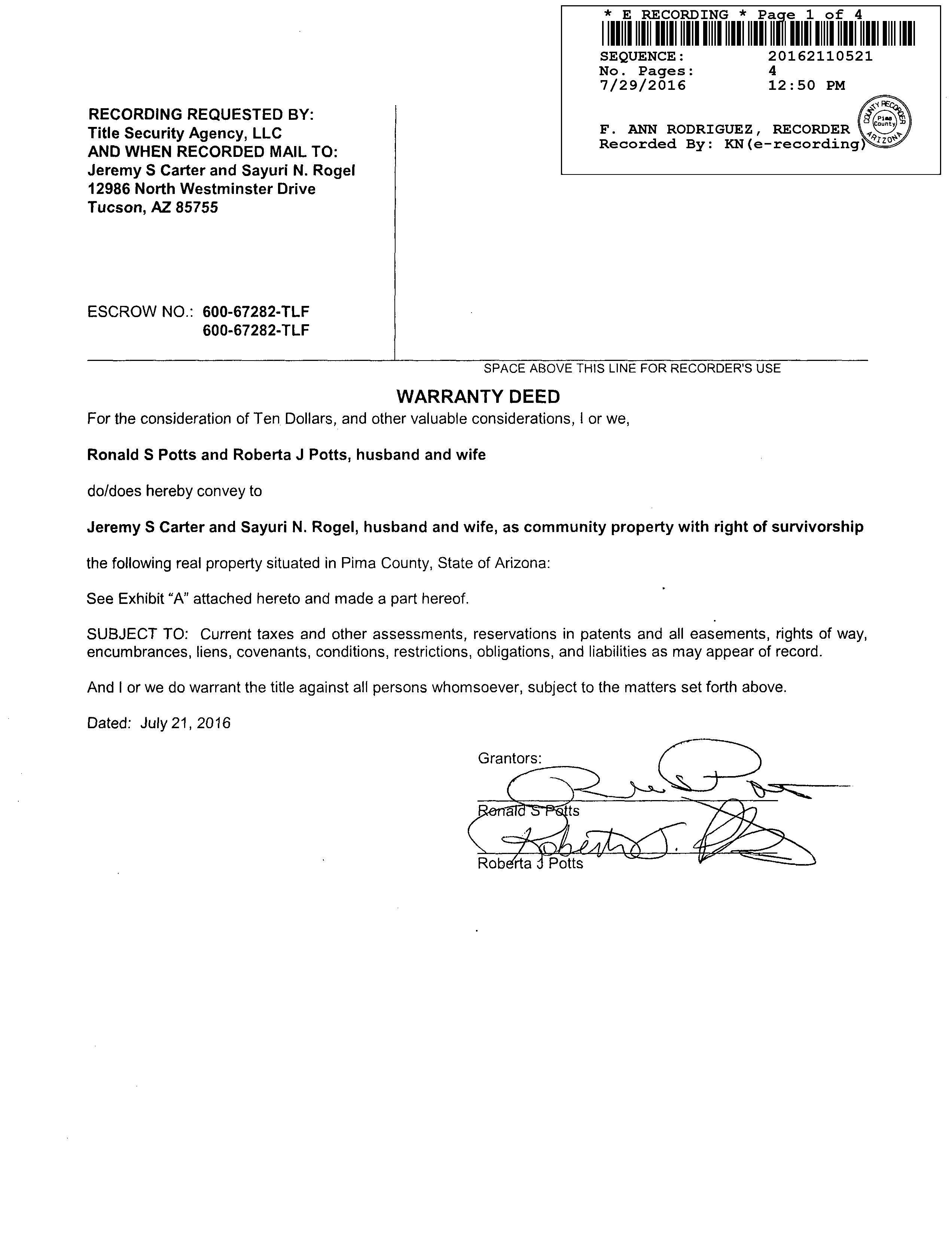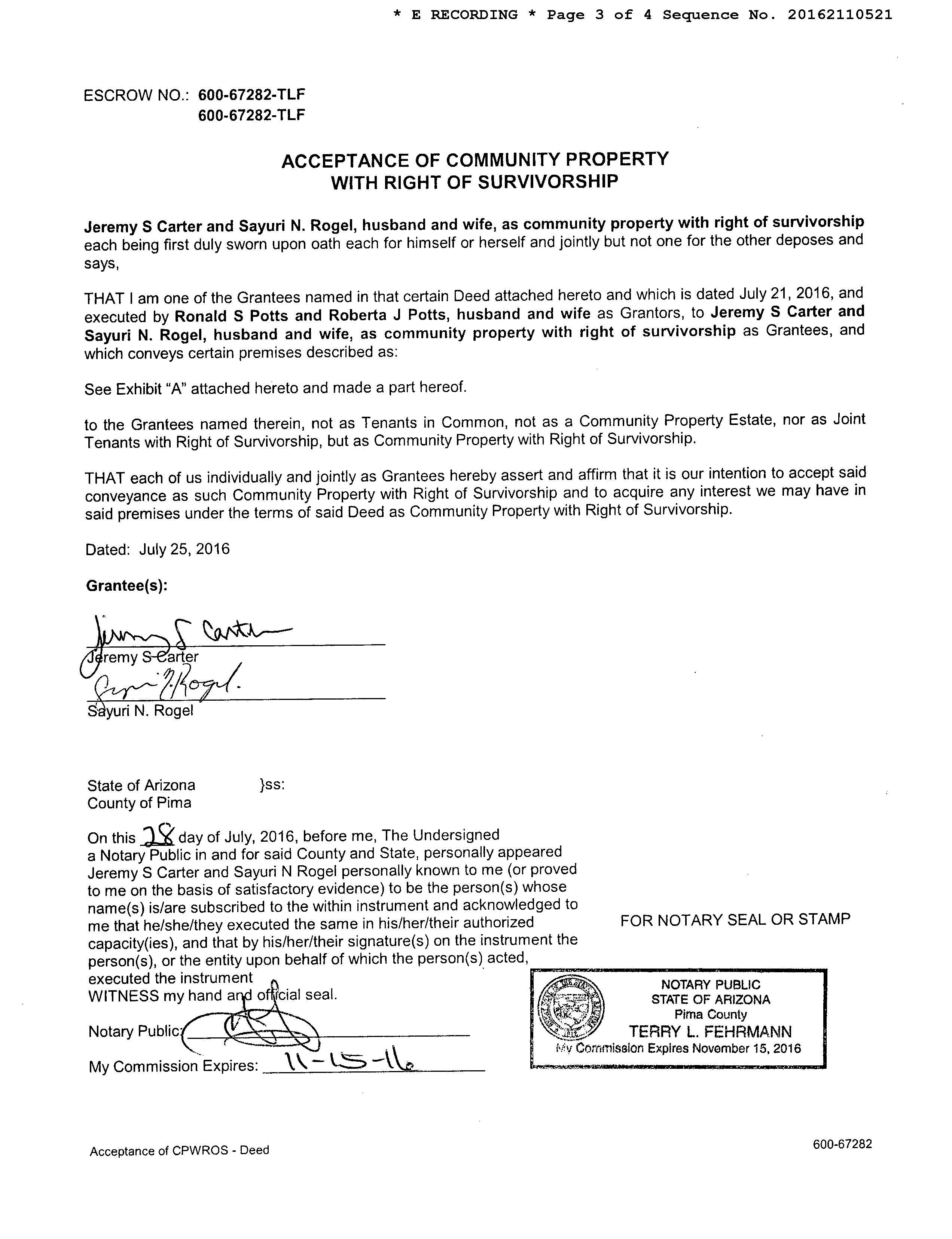 Owner Name : Carter Jeremy S / Rogel Sayuri N