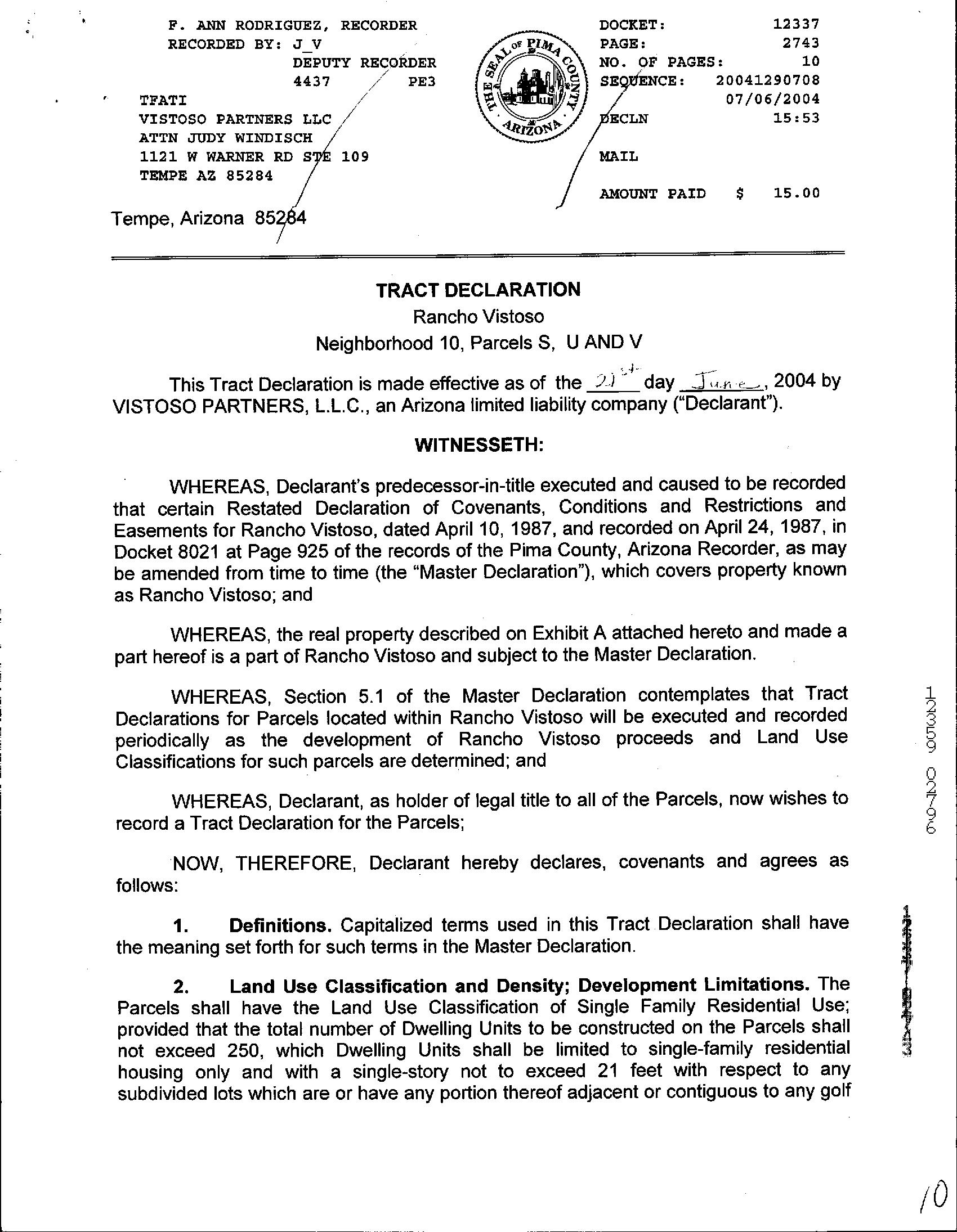 Subdivision : Vistoso Rho Nbrhd 10 S